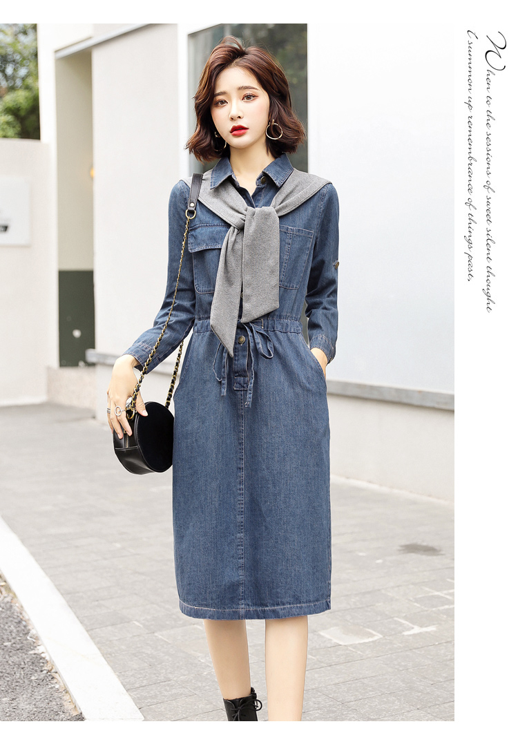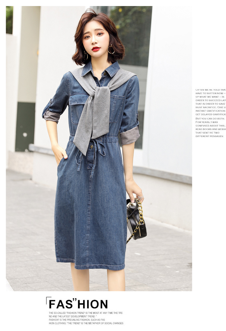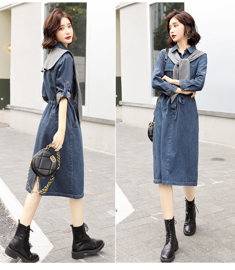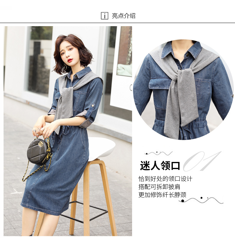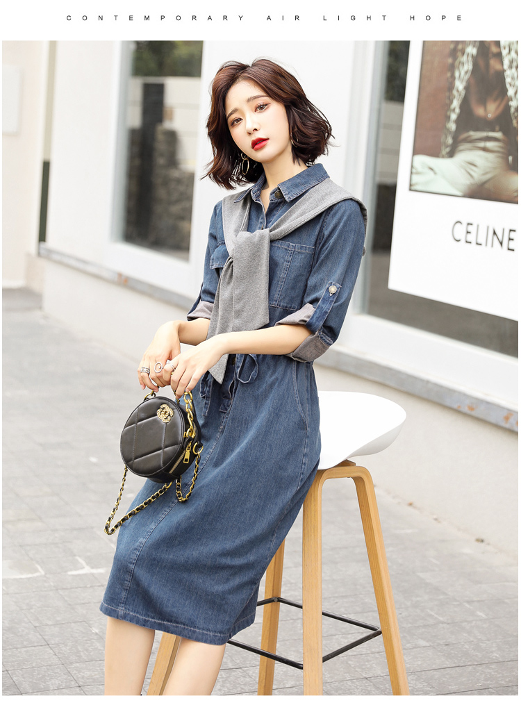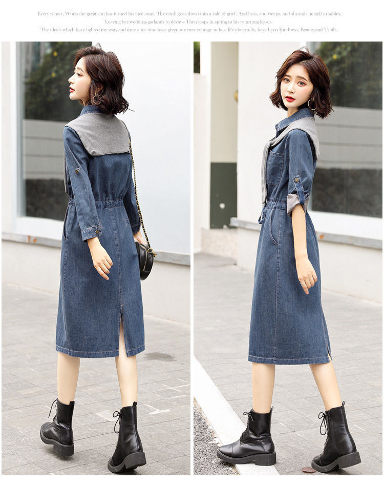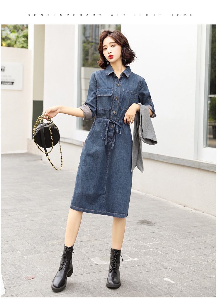 时尚气质,韩版休身显瘦牛仔收腰连衣裙HR-XMYR8092