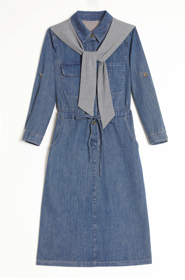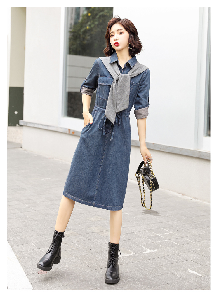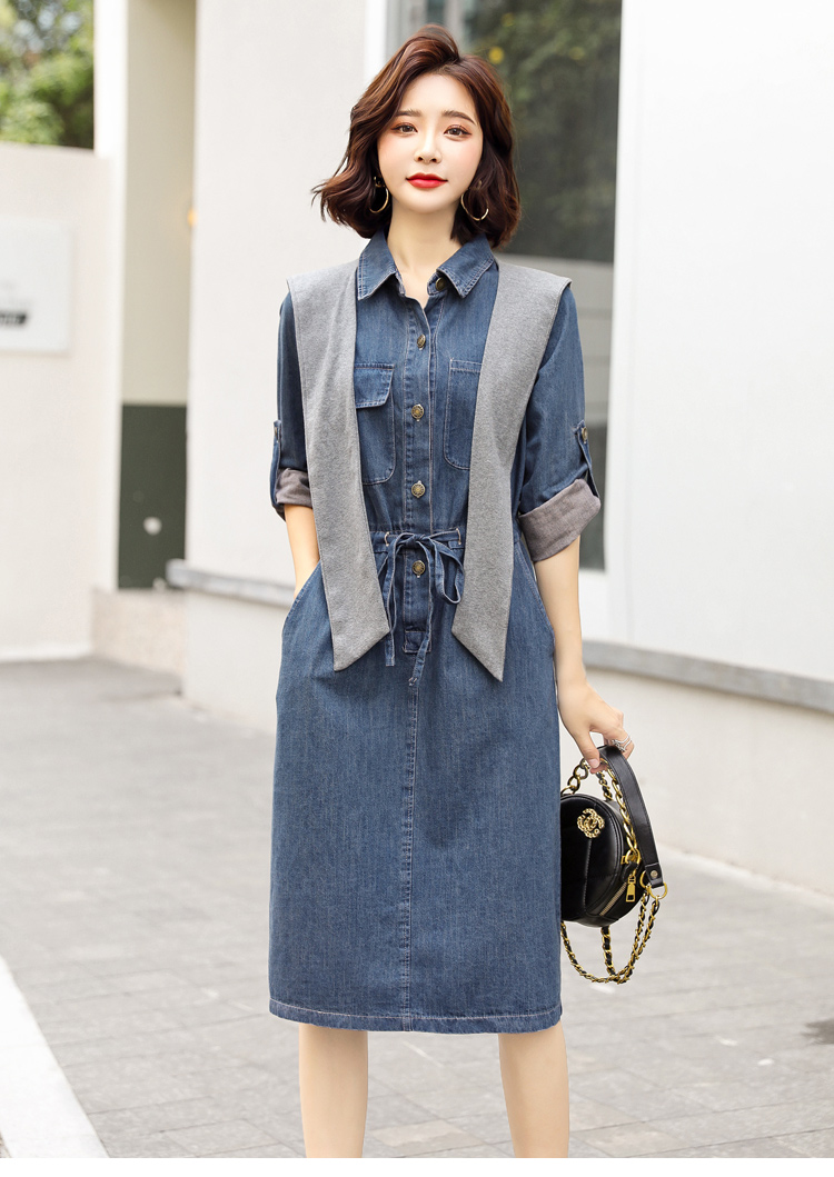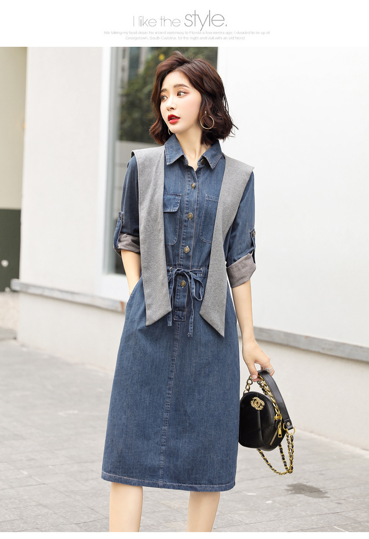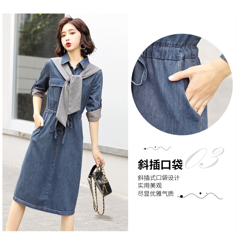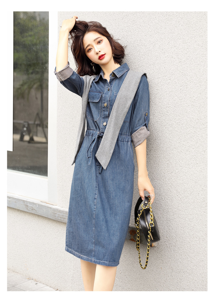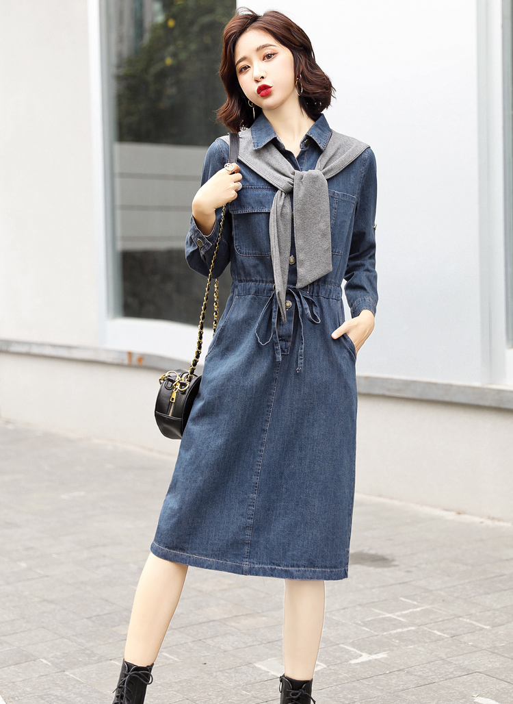 时尚气质,韩版休身显瘦牛仔收腰连衣裙HR-XMYR8092