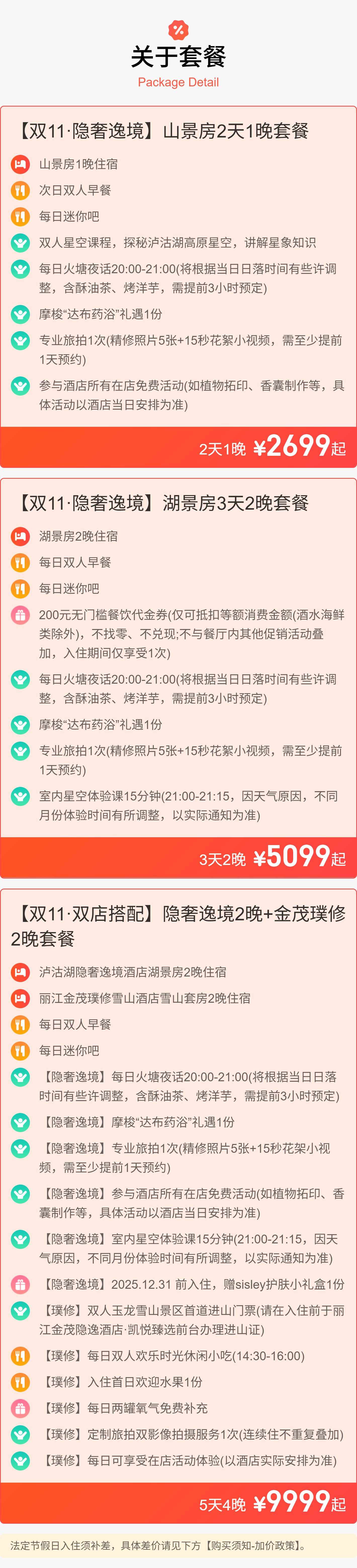 双11大促!1晚/2晚/4晚【泸沽湖隐奢逸境酒店】含星空课程、餐饮代金券、丰富体验活动,更有双店搭配套餐,入住丽江金茂璞修,享休闲时光小食、玉龙雪山景区进山门票、氧气补给等,川云奢华游!