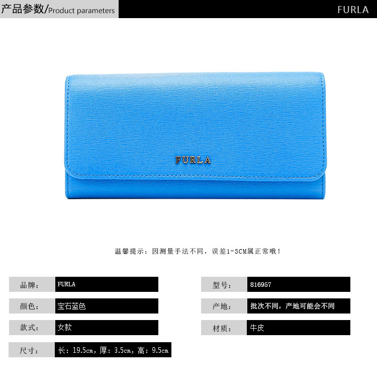 FURLA/芙拉 女士Saffiano皮革 宝石蓝色钱包钱夹 816957