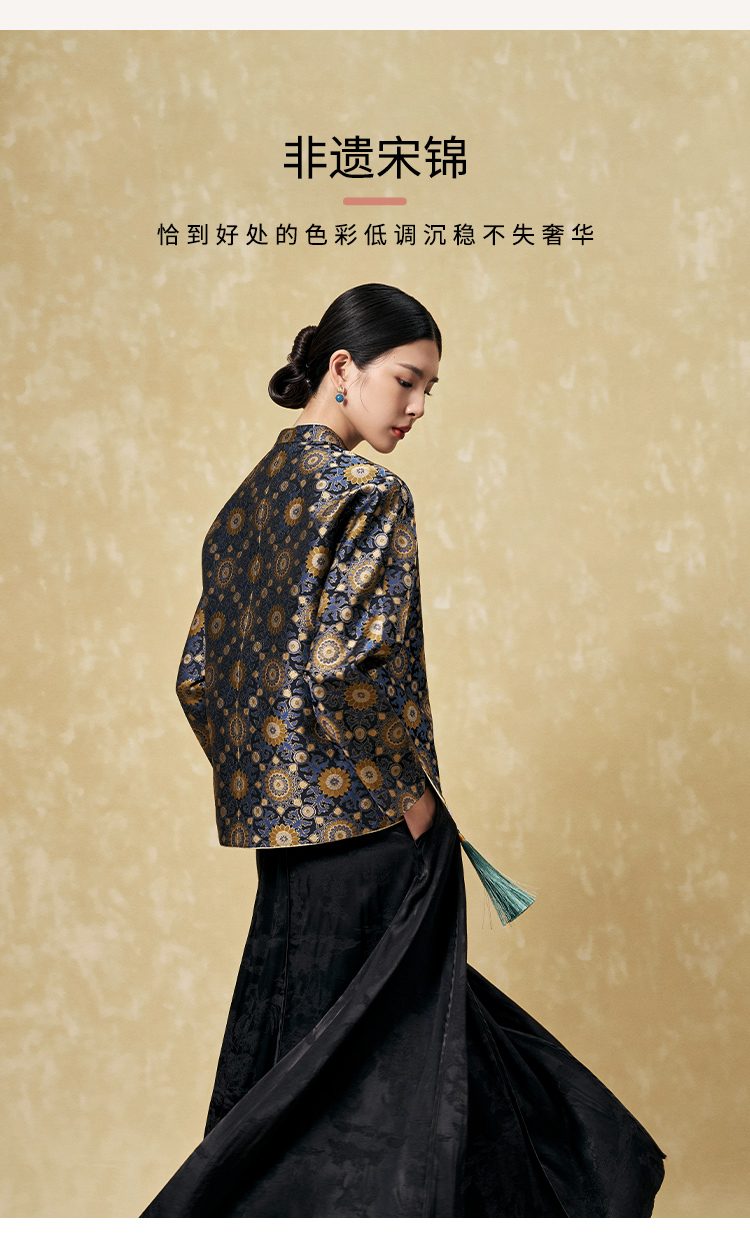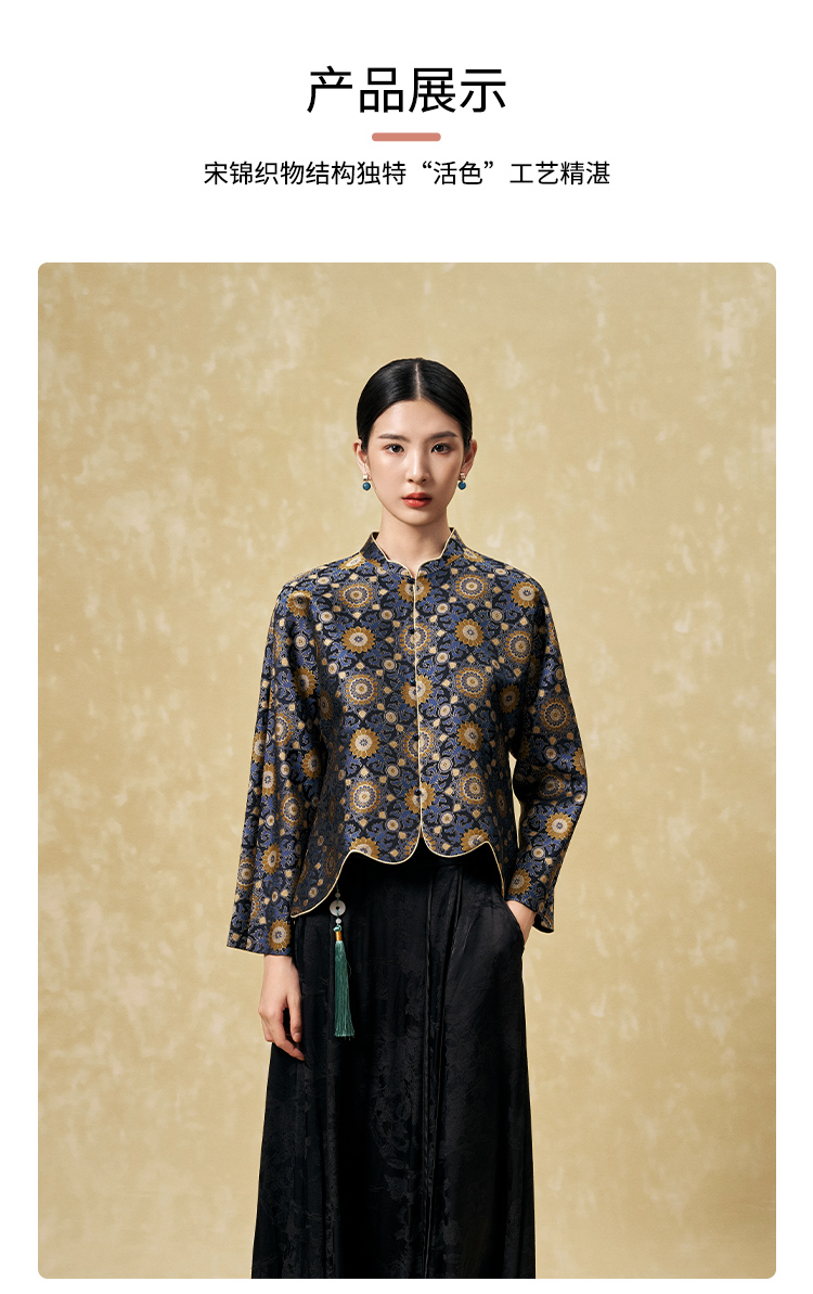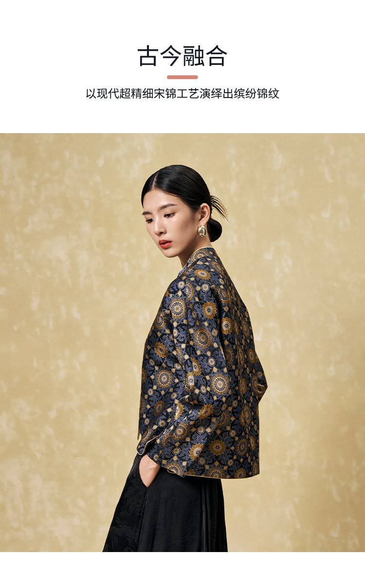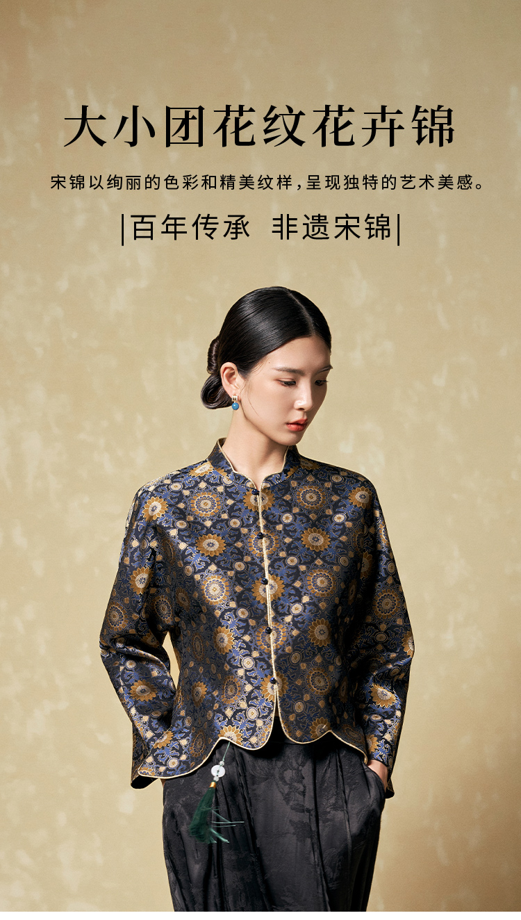SAINTJOY/上久楷 女式宋锦外套 中式上衣 中国风 复古 大小团花纹花卉锦 CY1024207016