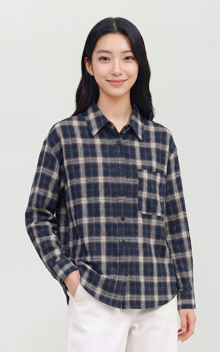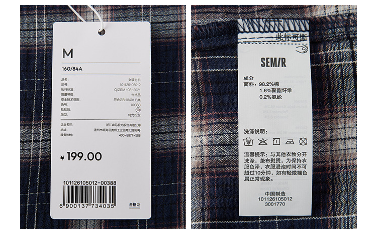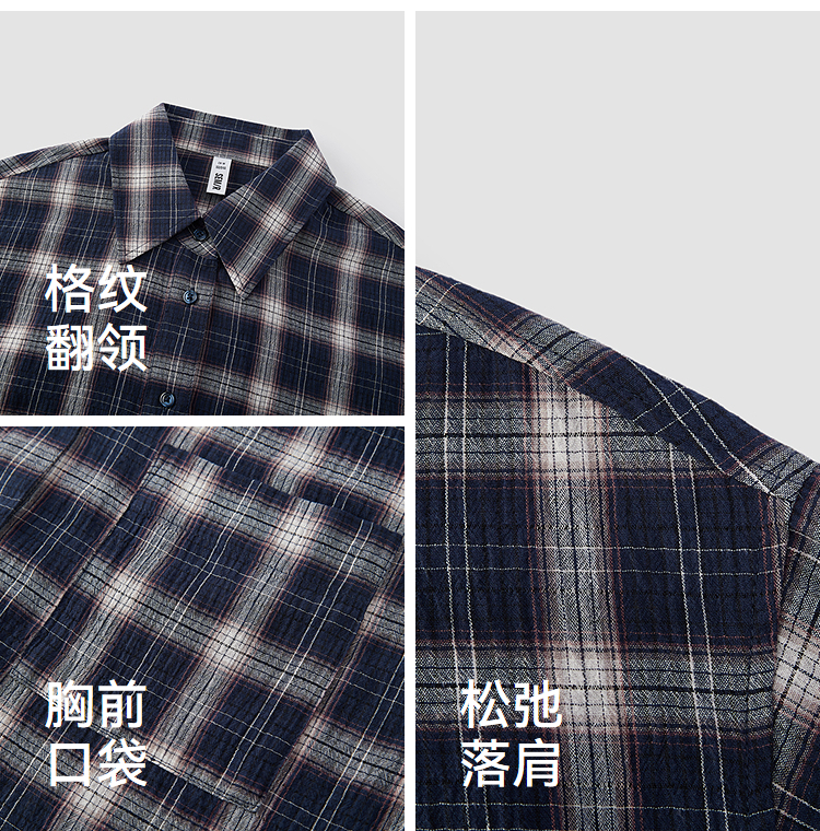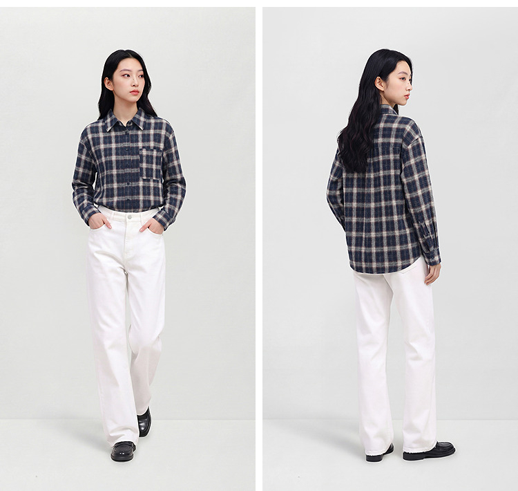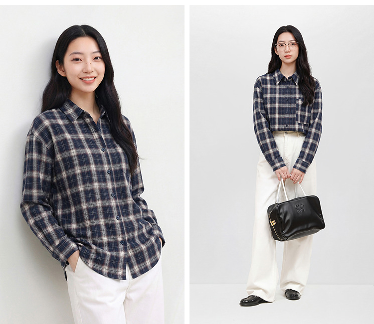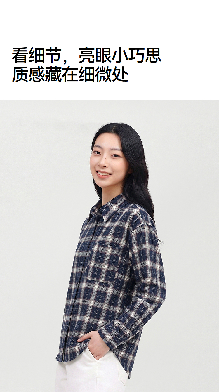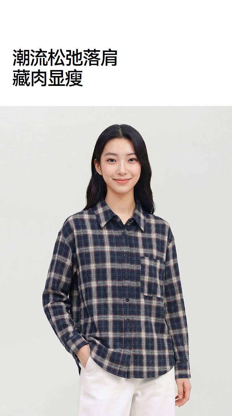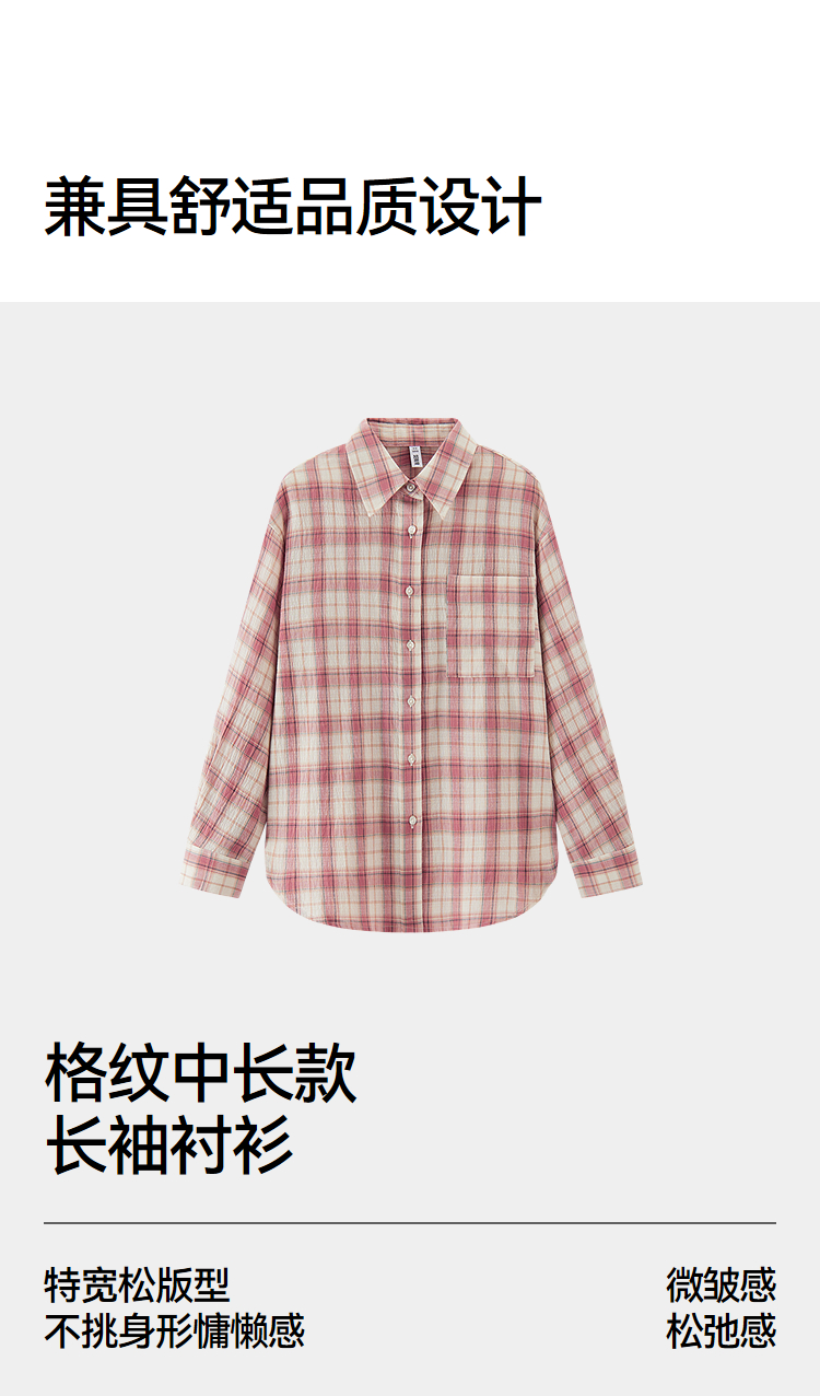 商场同款|森马长袖衬衫女春中长款oversize格纹2026新款潮流衬衣