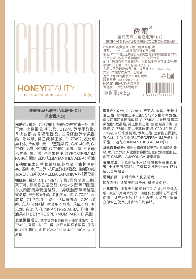 【蜜家特惠】透蜜 莹润无瑕三色遮瑕膏