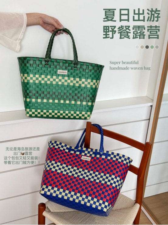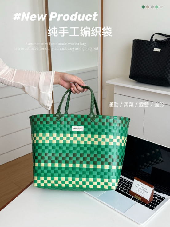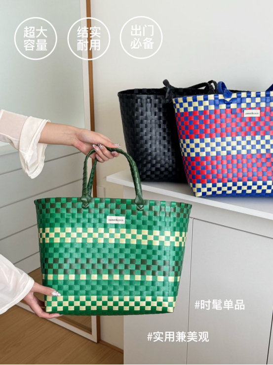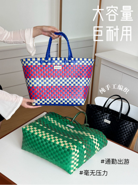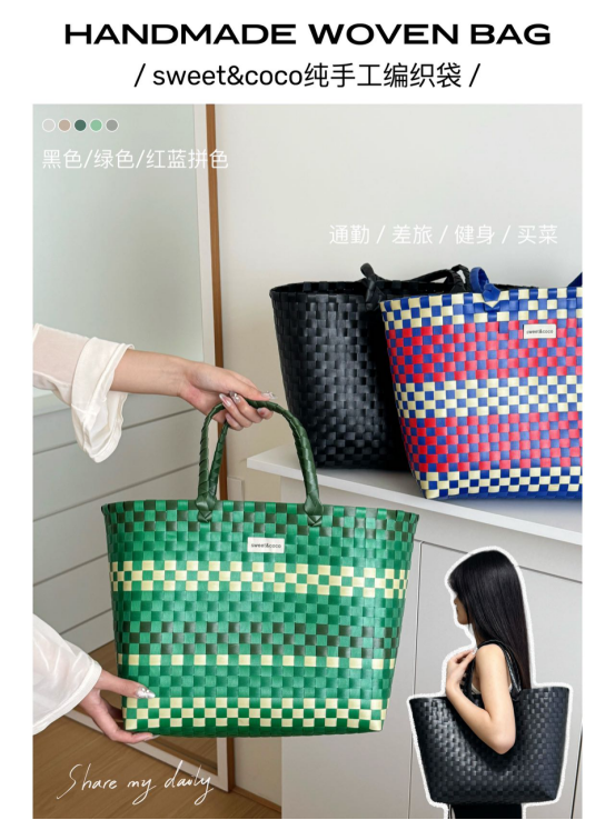 经典黑款通勤酷帅 绿色款温柔治愈 红蓝拼色复古吸睛 耐磨耐造的pp仿藤材质 超大容量满足日常所有需求 出门通勤 上班出差 旅游野餐🧺 它都是最靠谱的时尚单品!