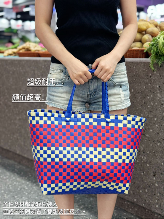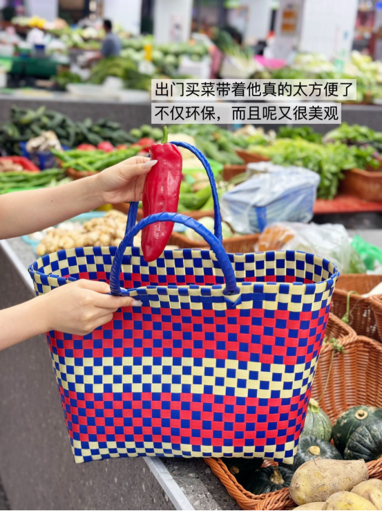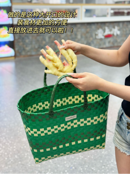 不得不说这款包包简直是买菜必备!! 入手后 我还给婆婆 妈妈都买了一个~ 34cm大底盘超能装 两三颗白菜+十斤土豆轻松塞下 加厚pp藤片耐磨抗造 提重物完全不勒手!