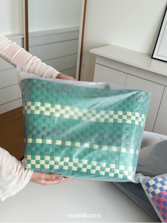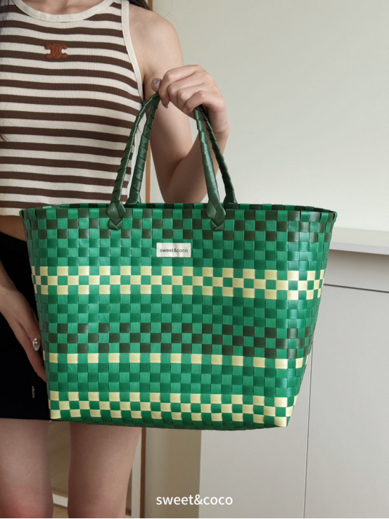Coco编织袋简直是「万能搭子」! 手工编织质感拉满 黑色高级 绿色清新、红蓝拼色超吸睛~ 30×14×34cm的大容量太绝了 电脑 食材 健身装备全收纳! 实用又好看 日常带着贼方便!入股不亏!