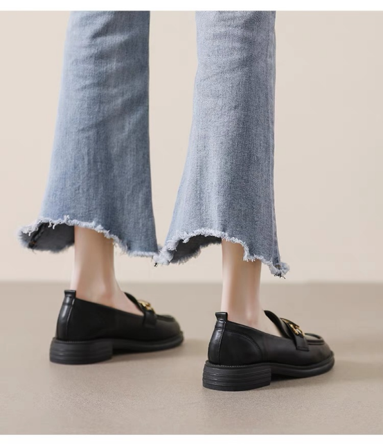 👏【TATA 同款】复古英伦风金属扣乐福鞋 😎 这质感真的绝美 脚感巨巨巨好💥 ✅ 鞋子精致又贵气☺️的随便搭配套裙子都好减龄软,👉