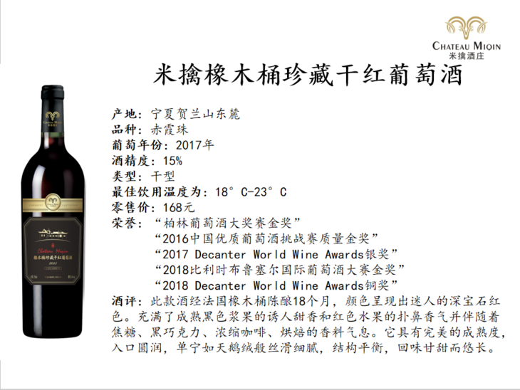 【米擒酒庄】1号橡木桶珍藏干红葡萄酒 750ml