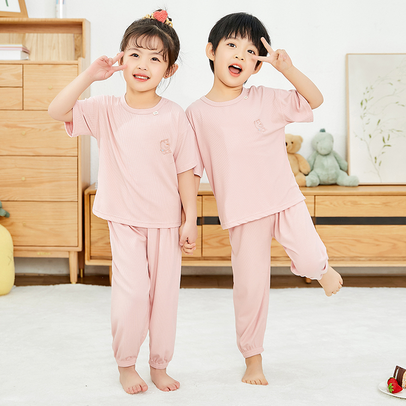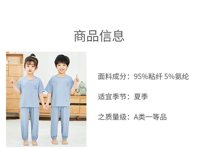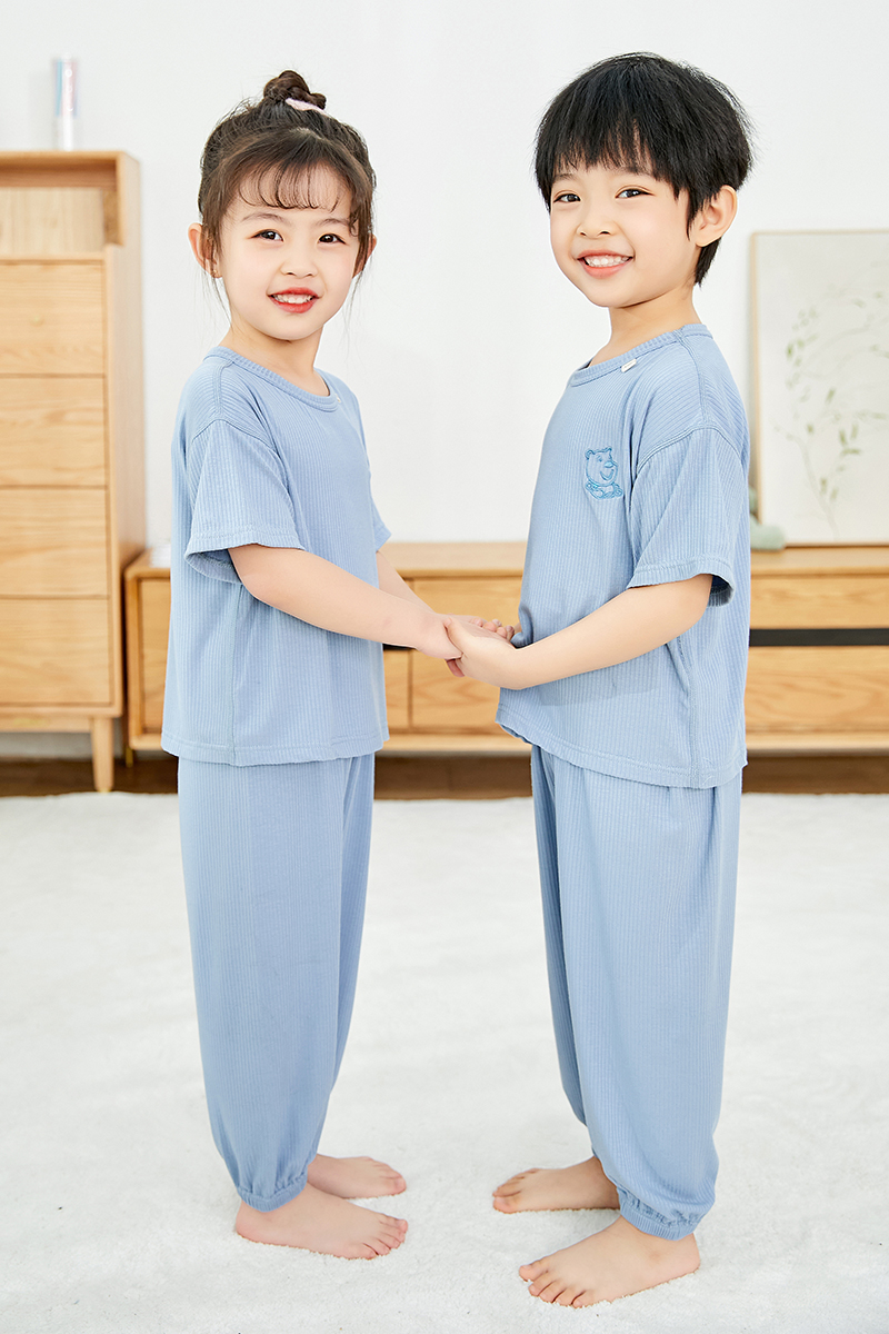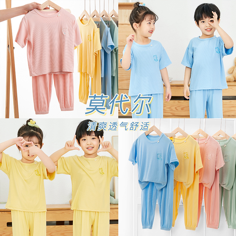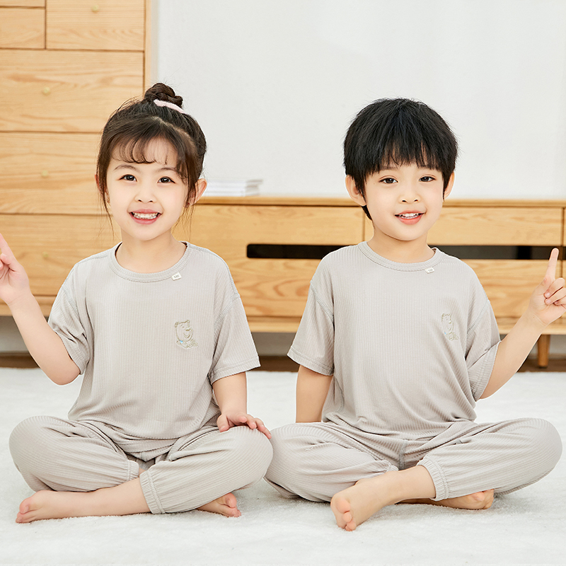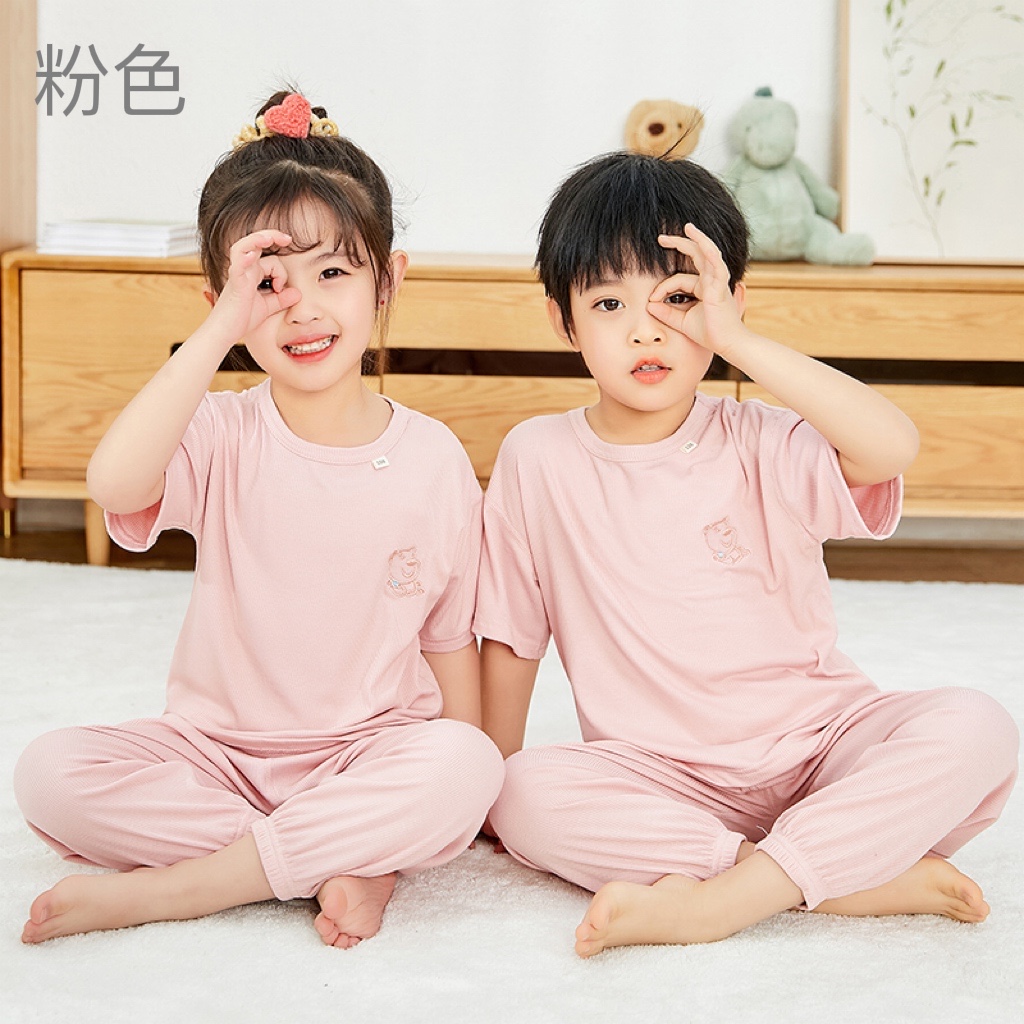 【品名】【A类标准】仪家男女童莫代尔舒适家居服套装