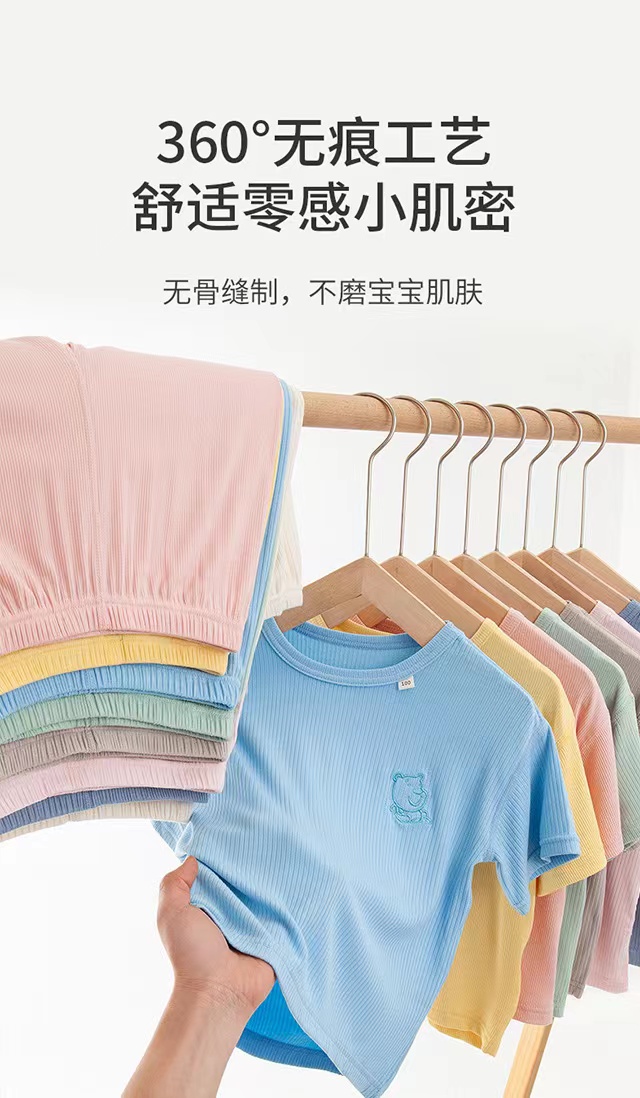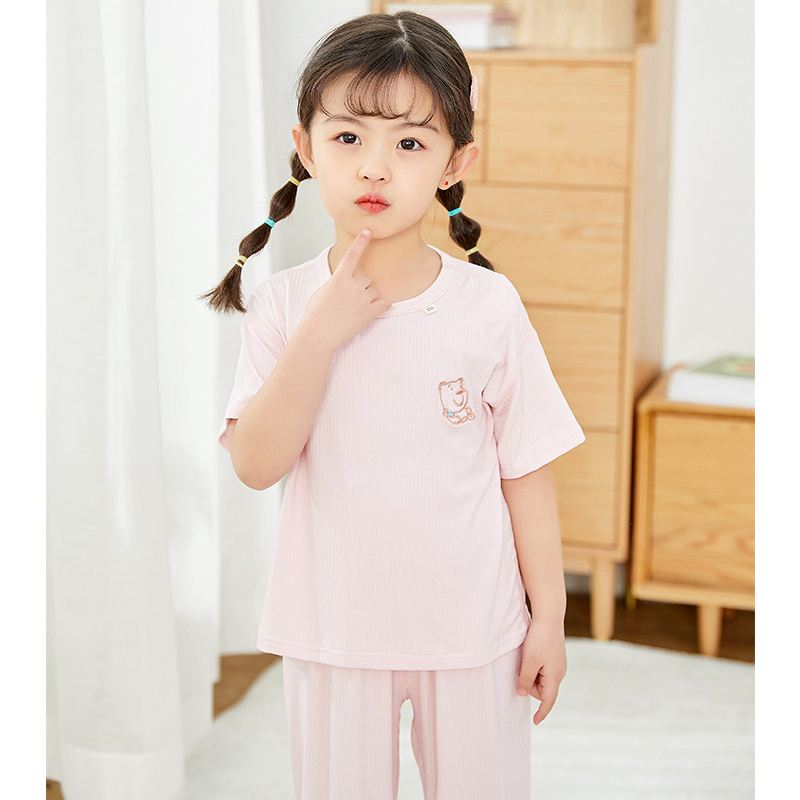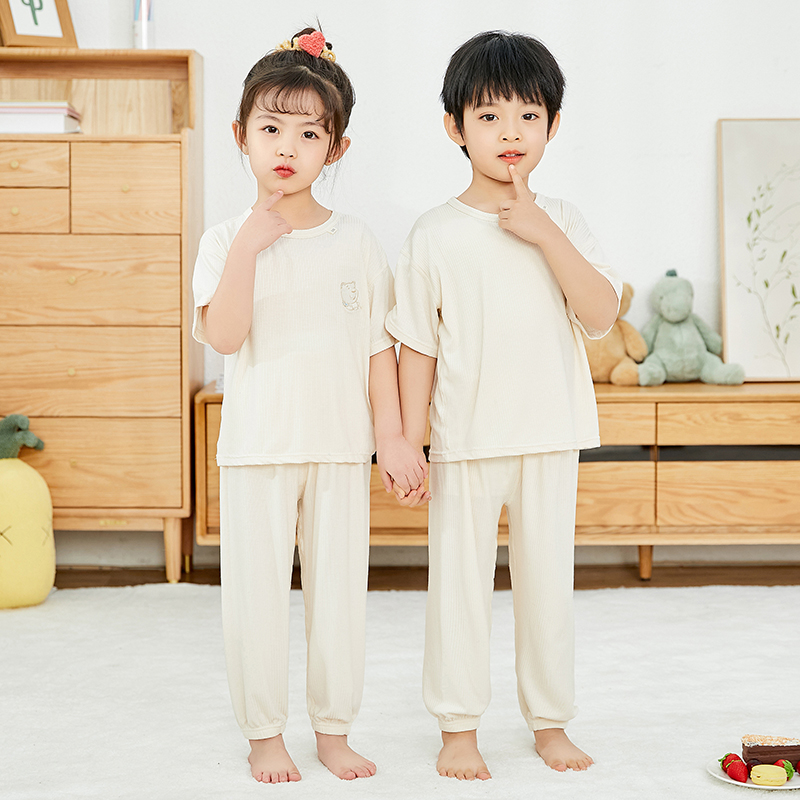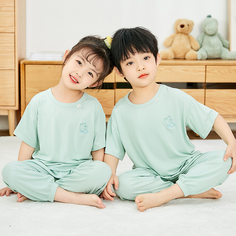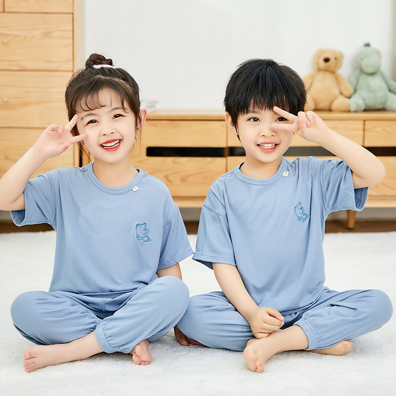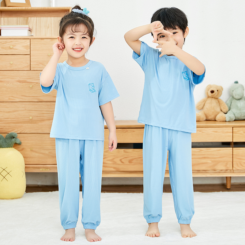 【品名】【A类标准】仪家男女童莫代尔舒适家居服套装