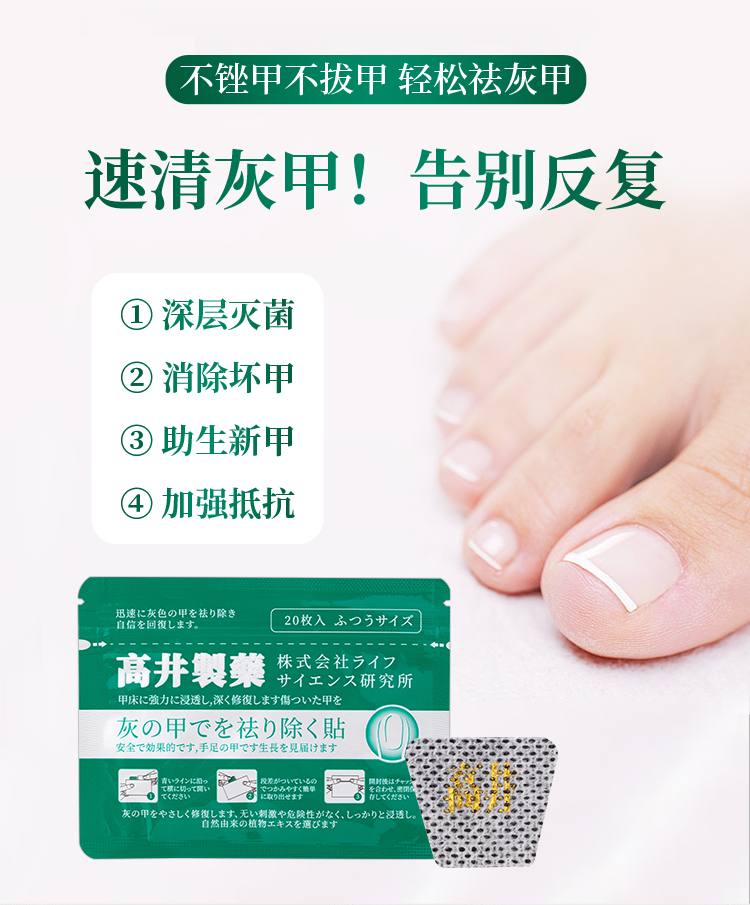 日本高井灰甲贴 无痛高效速清灰甲、告别反复,长出亮白新指甲