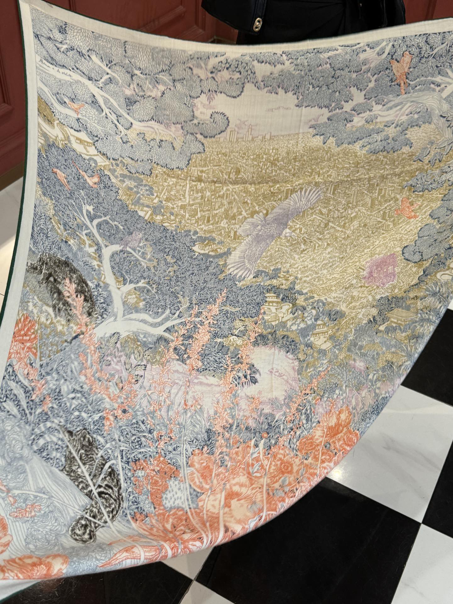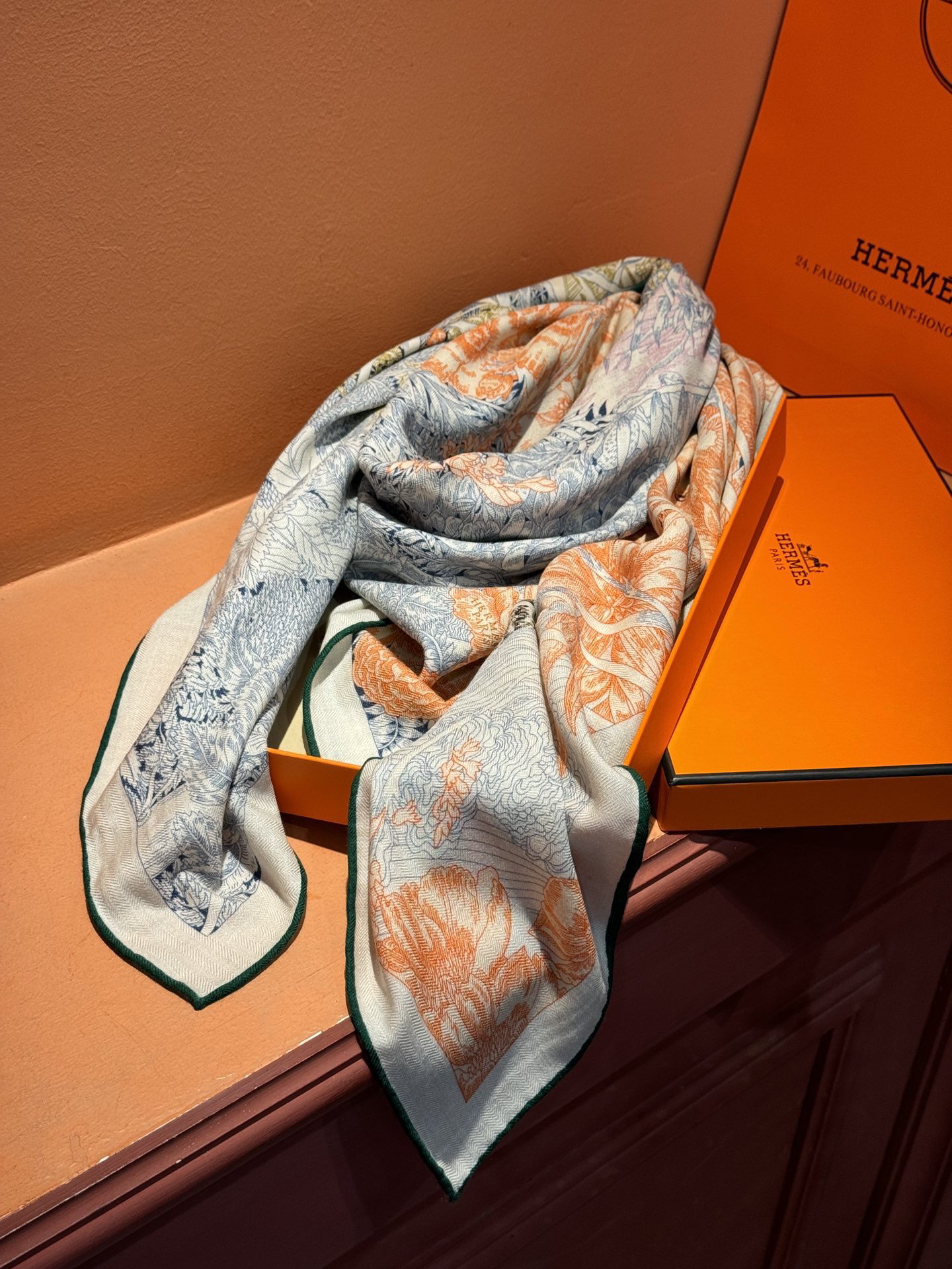 秋冬特惠💰420 爱马仕围巾 秋冬搭配利器 双面同色 版真丝羊绒披肩!点睛精彩,图案和配色都超级喜欢,又一款双面配色工艺设计的丝绒披肩,超级喜欢!!!!一条披肩等于两条 穿出高级感!实物上身真的很时髦气质!!这个批次品质超好!提醒下喜欢的姐妹们,必须早点入手,这个出完无补的!一条披肩正反两种配色,真是省银子省到家了,不用纠结颜色了,一次入两!!!尺寸规格:140*140cm 双面印染双配色真丝羊绒披肩