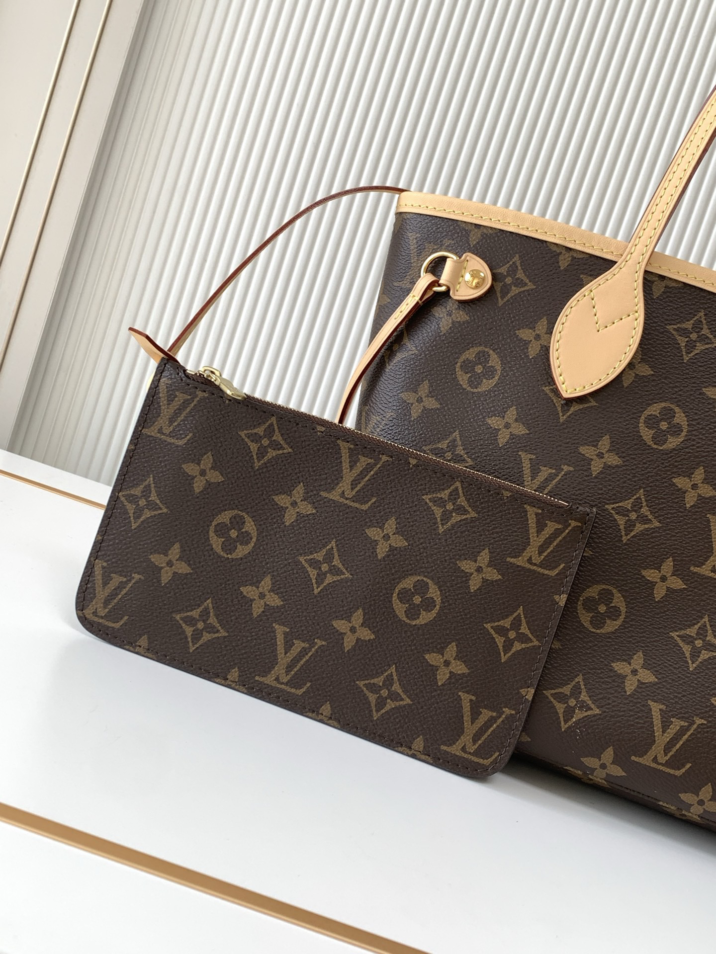 秋冬特惠💰1190 渠道级LV【全钢五金 MB163c01变码芯片】te级LV 全套包装 M46979老花杏内里 NEVERFULL 小号手袋 Neverfull 小号手提包