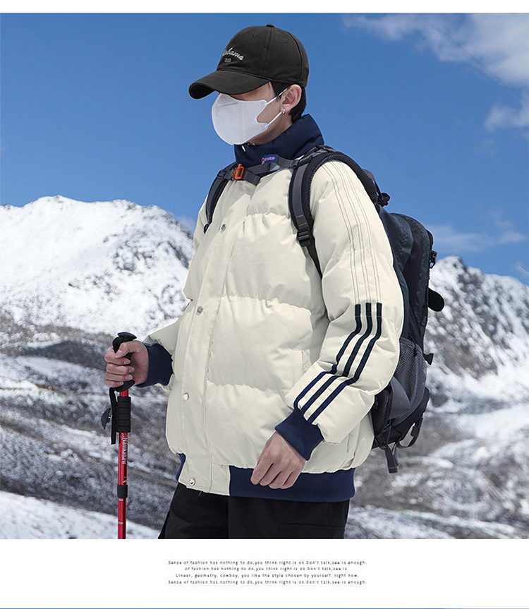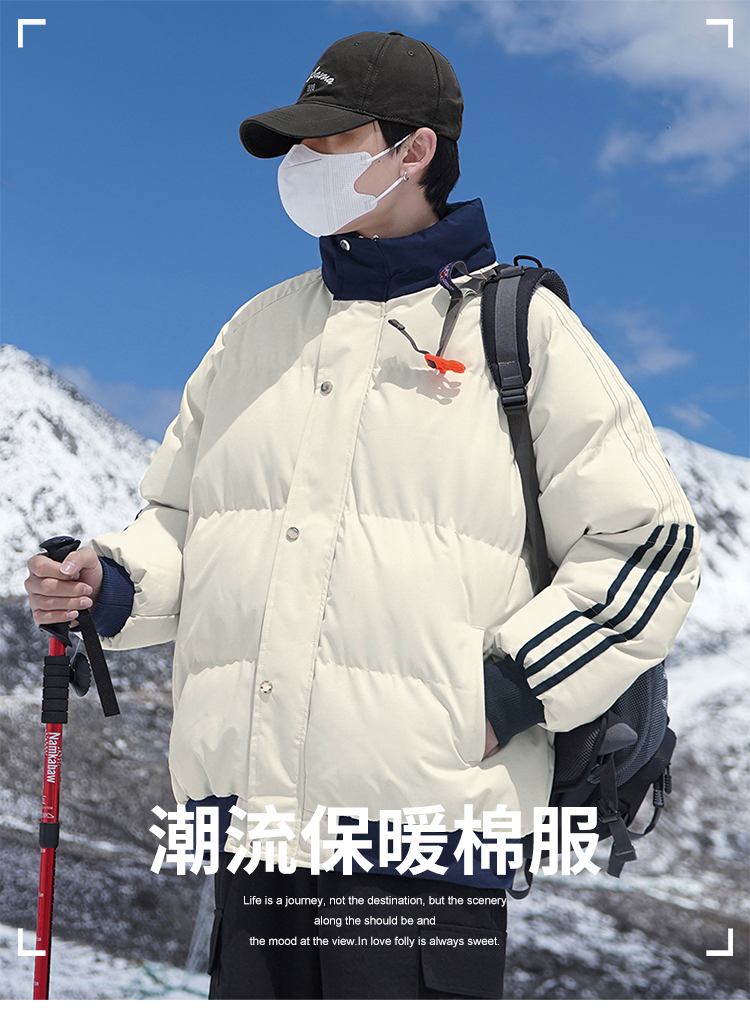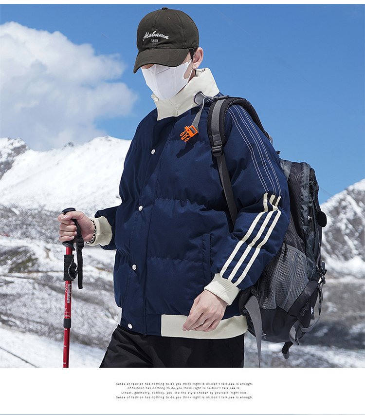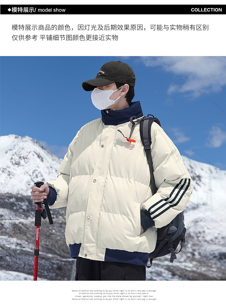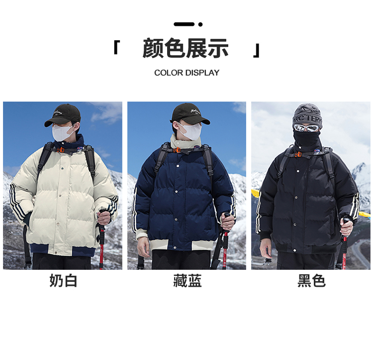 【YW】无忧购秋冬情侣三条杠撞色保暖加厚立领防风棉服667(截单后7天发货)25年清仓捡漏