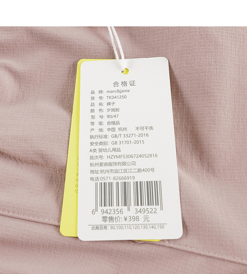 马克珍妮男女童城市户外加绒降落伞裤2024年秋冬241250