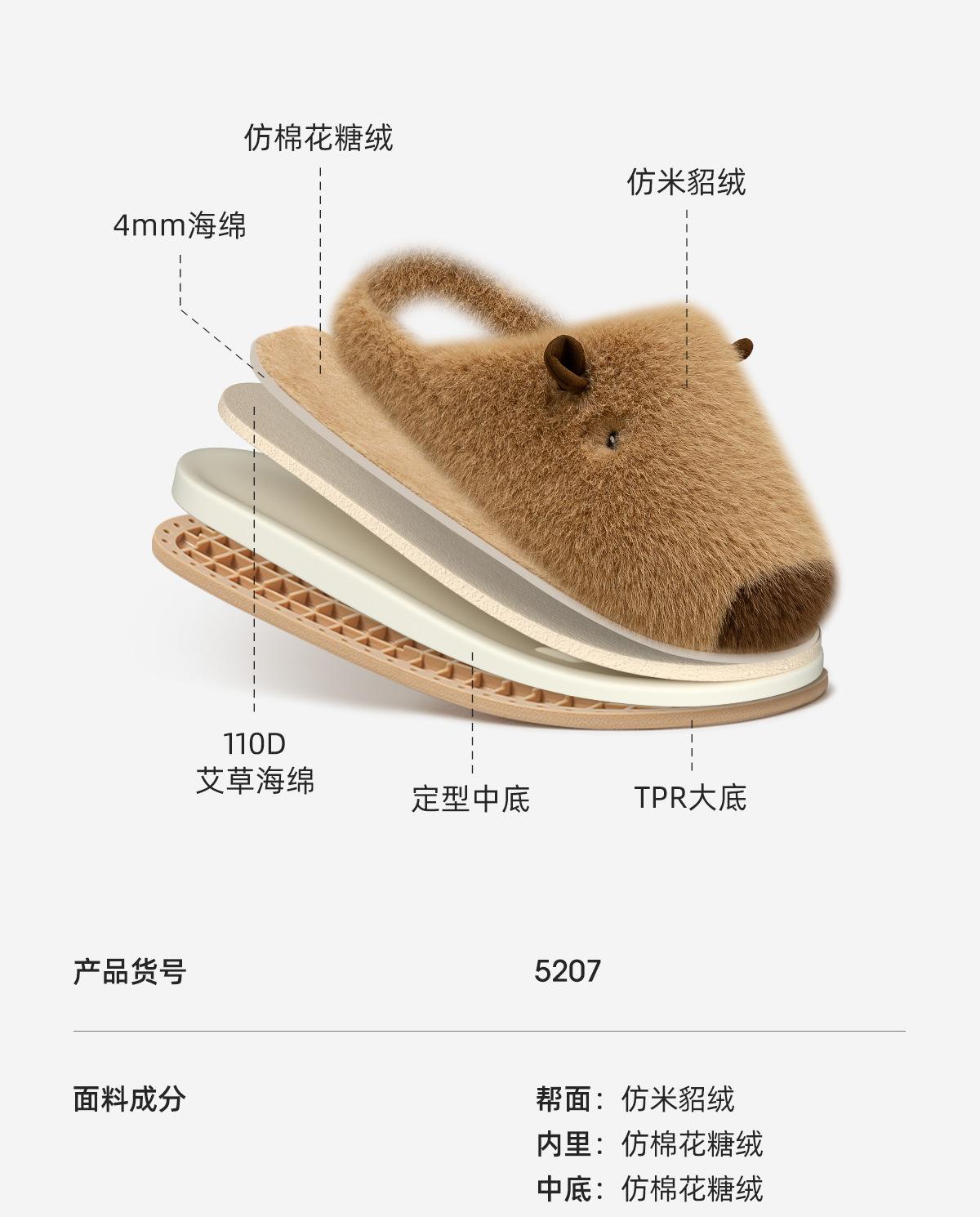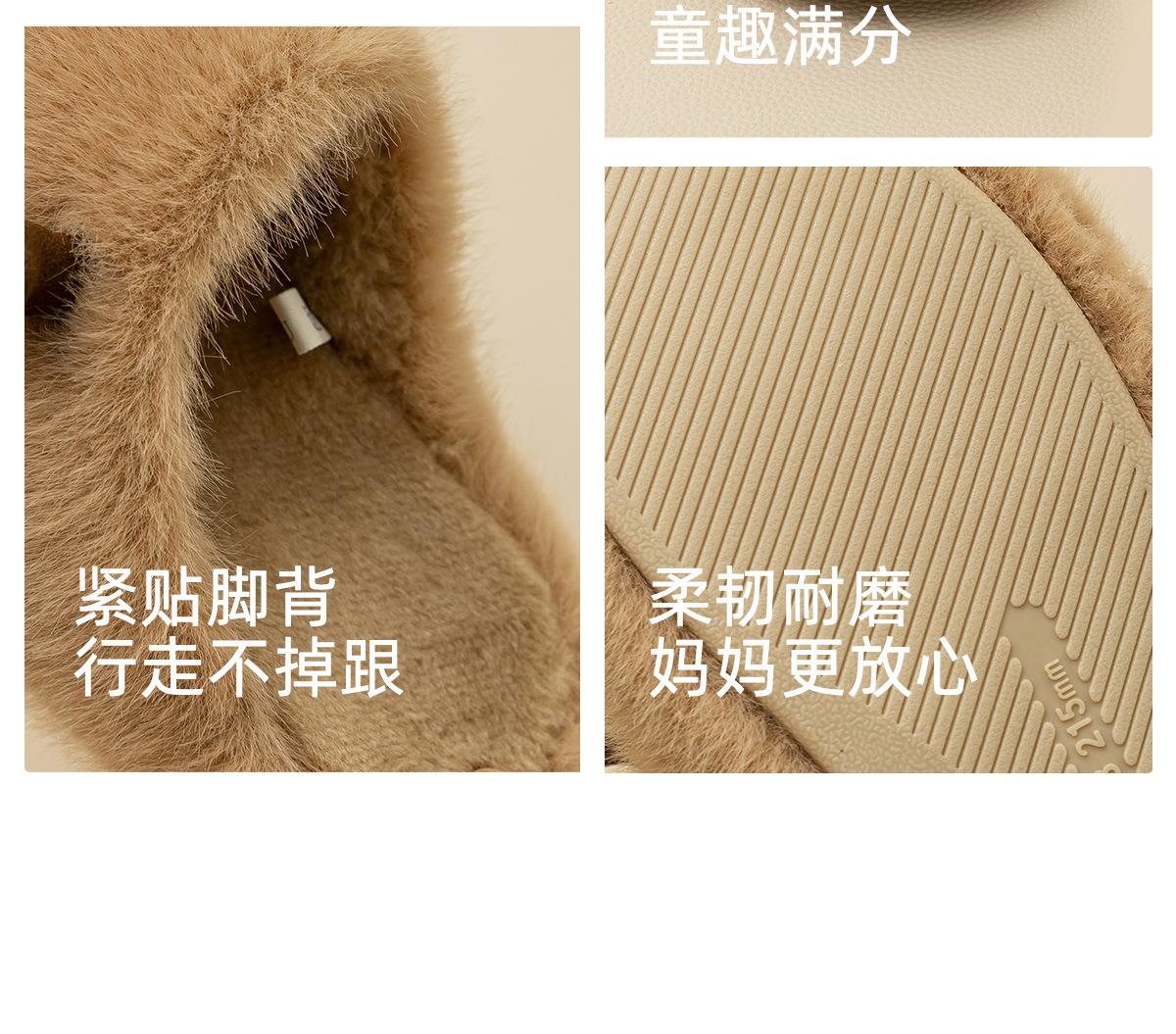 远港儿童毛绒棉拖鞋秋冬季男孩女童保暖家居加绒大童亲子一家三口