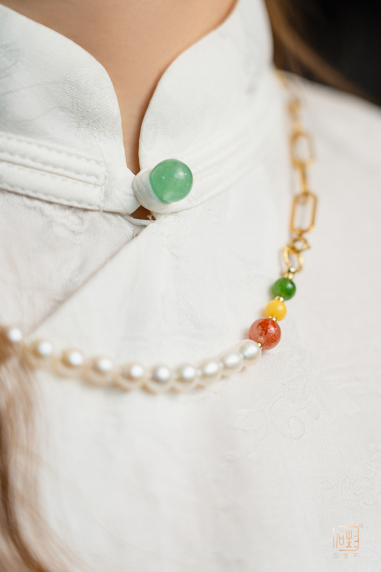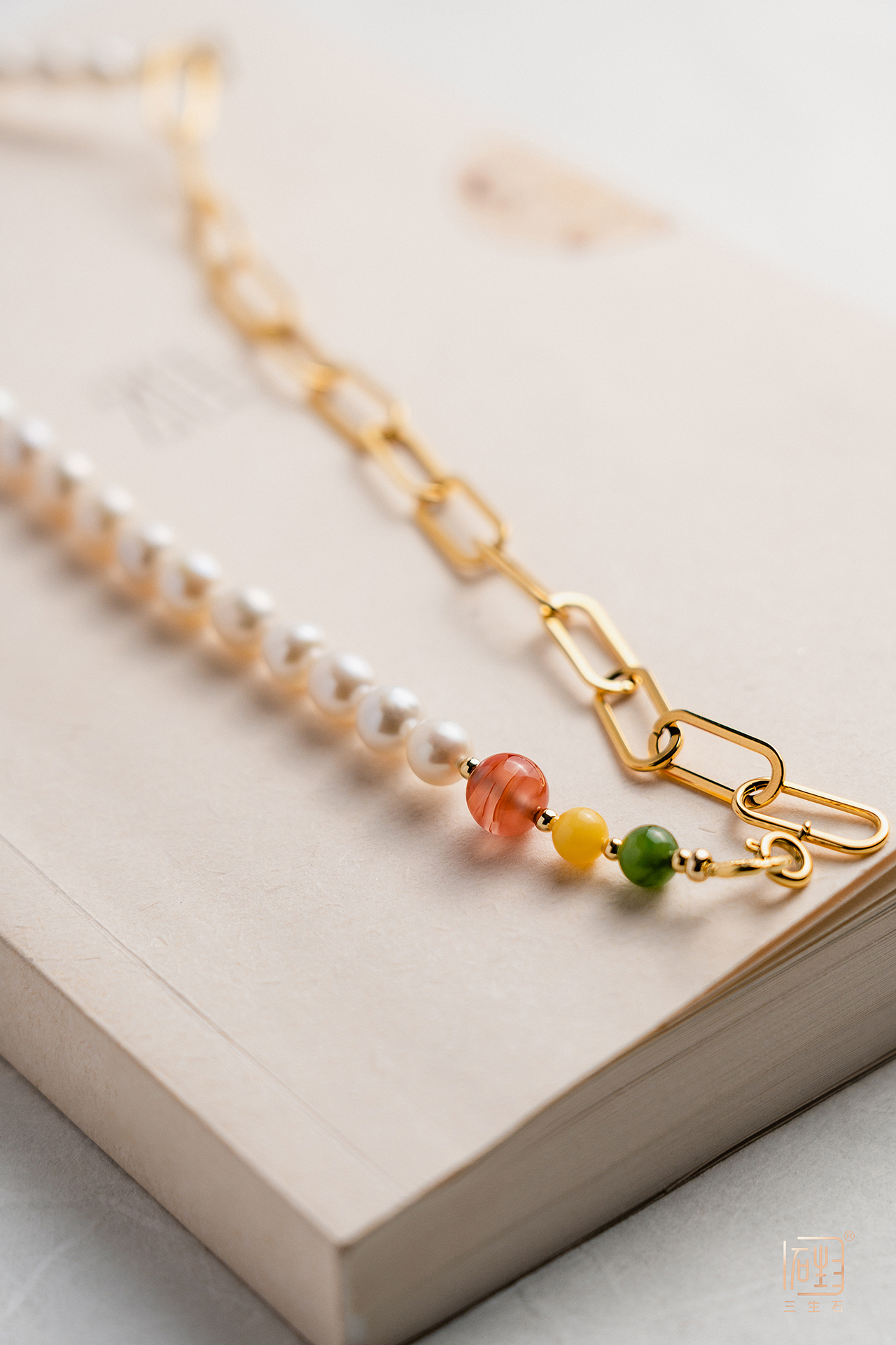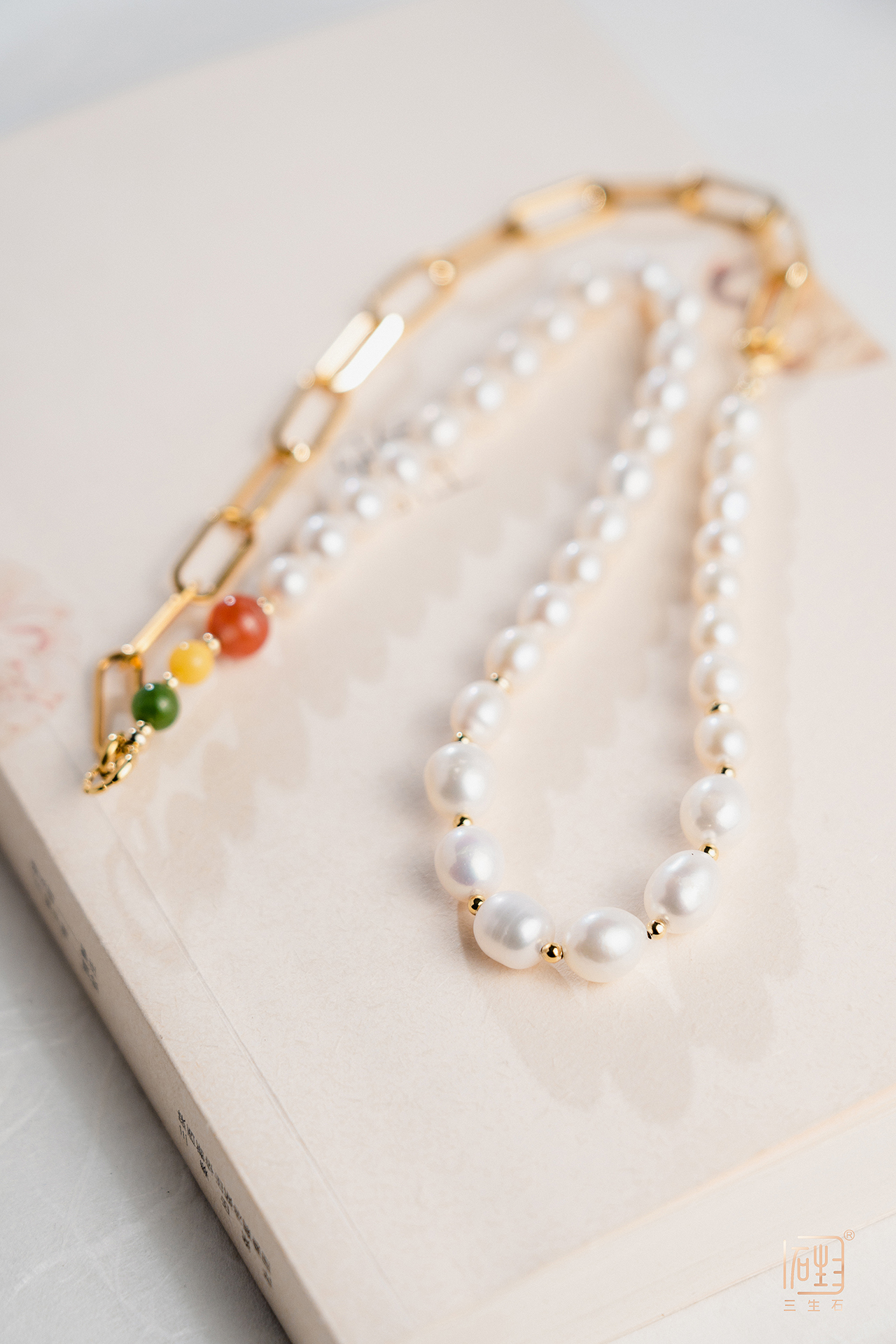 天然巴洛克珍珠、蜜蜡、碧玉、南红的组合
