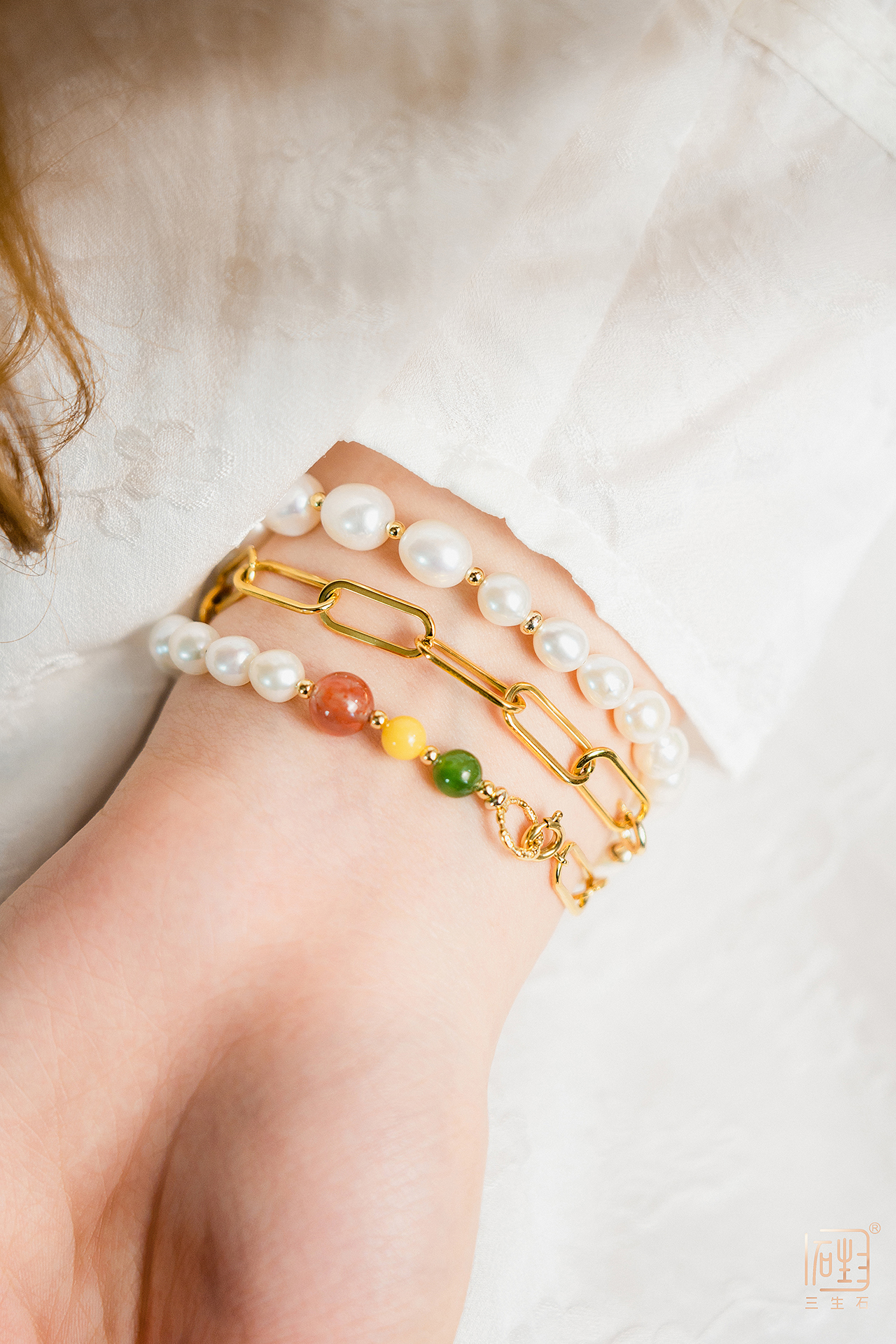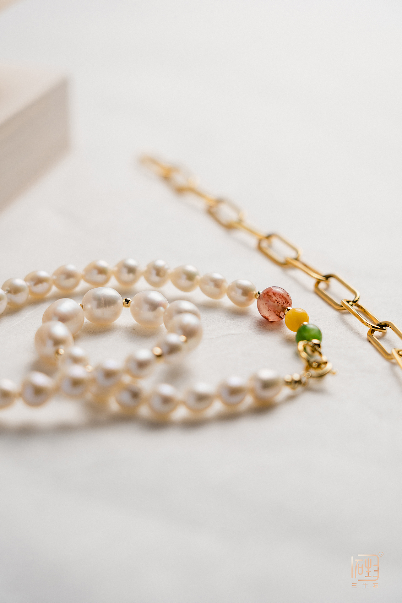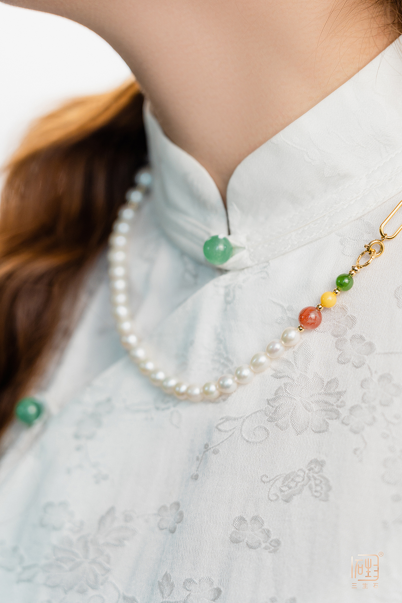 天然巴洛克珍珠、蜜蜡、碧玉、南红的组合