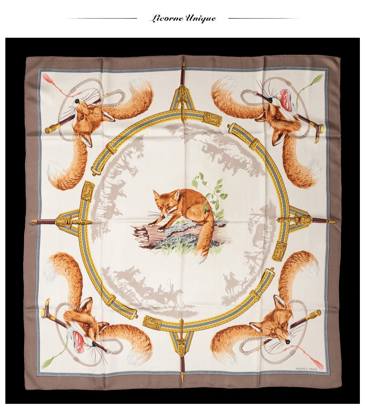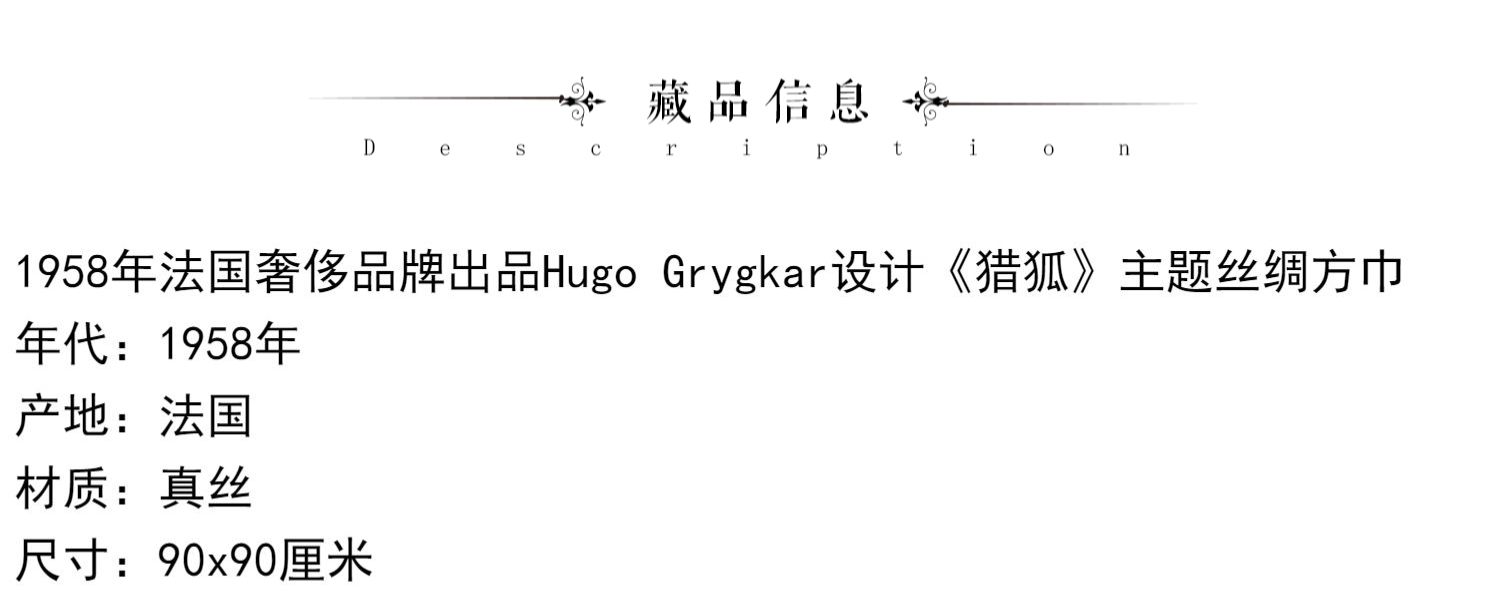 独角鹿西洋古董法国品牌Hugo Grygkar设计《猎狐》主题方形丝巾