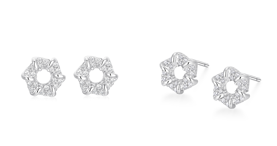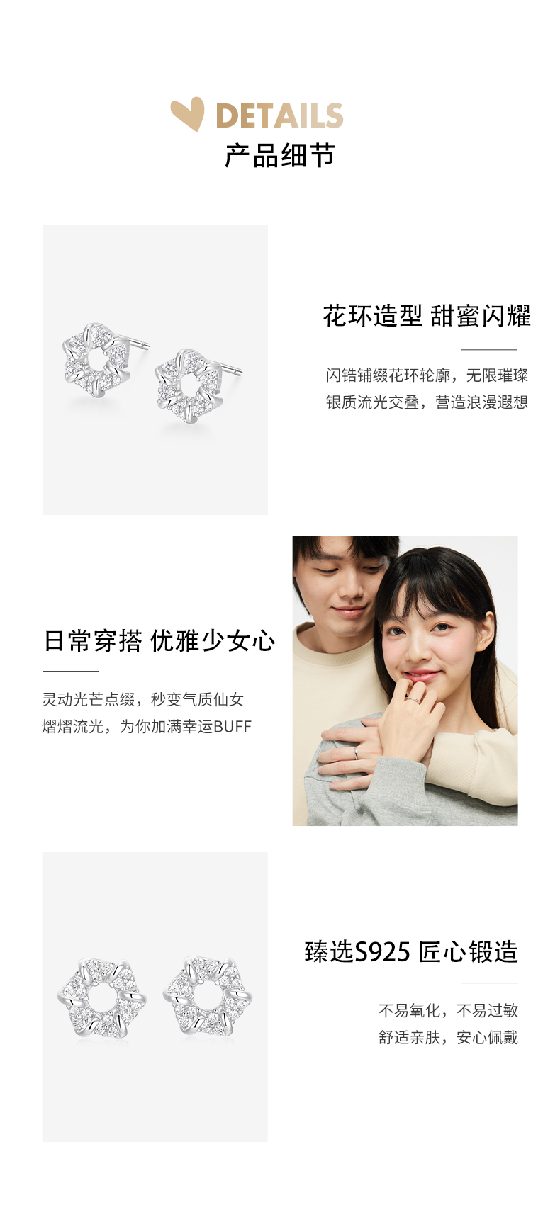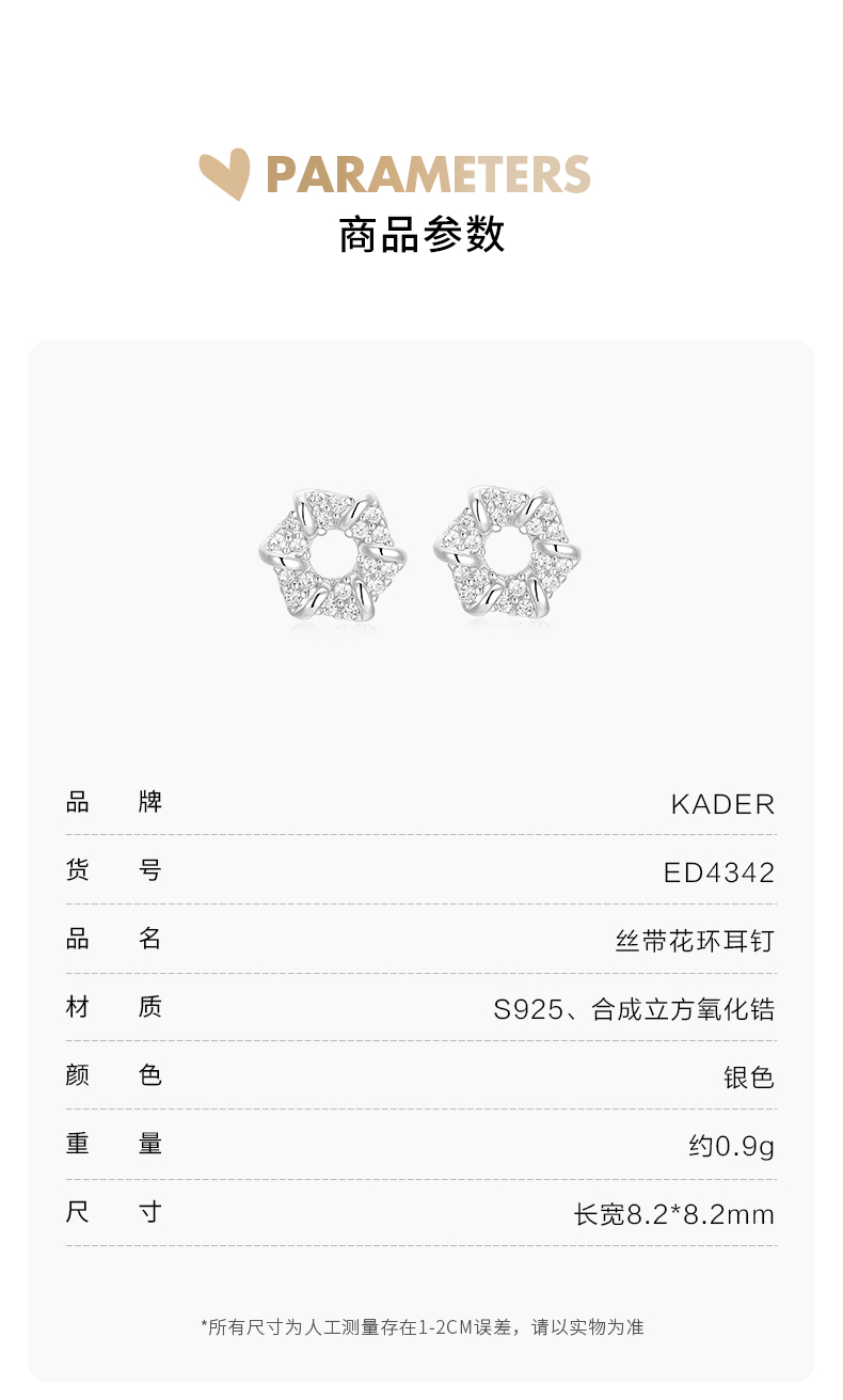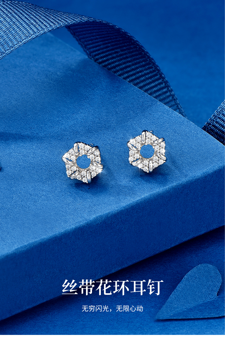 卡蒂罗/KADER 丝带花环 圣诞花环造型满镶宝石养耳洞银耳饰 简约几何璀璨闪耀耳钉女生 925银 闺蜜同款礼物