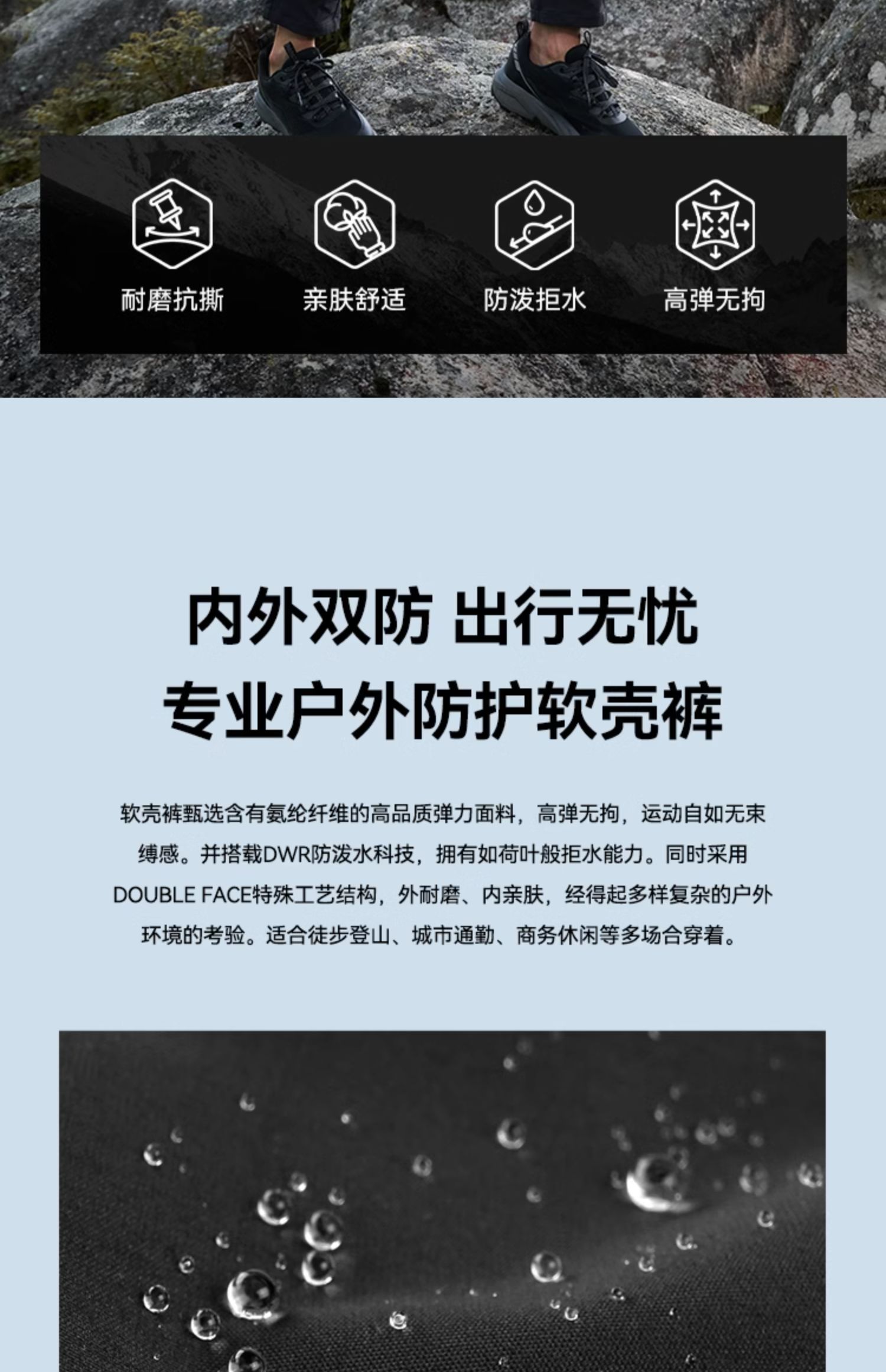 伯希和软壳裤女25新款户外防风防泼水运动弹力长裤显瘦直筒登山裤