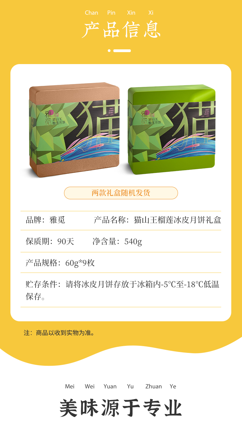 猫山王榴莲冰皮月饼60g*9【包邮直发】(ZB)