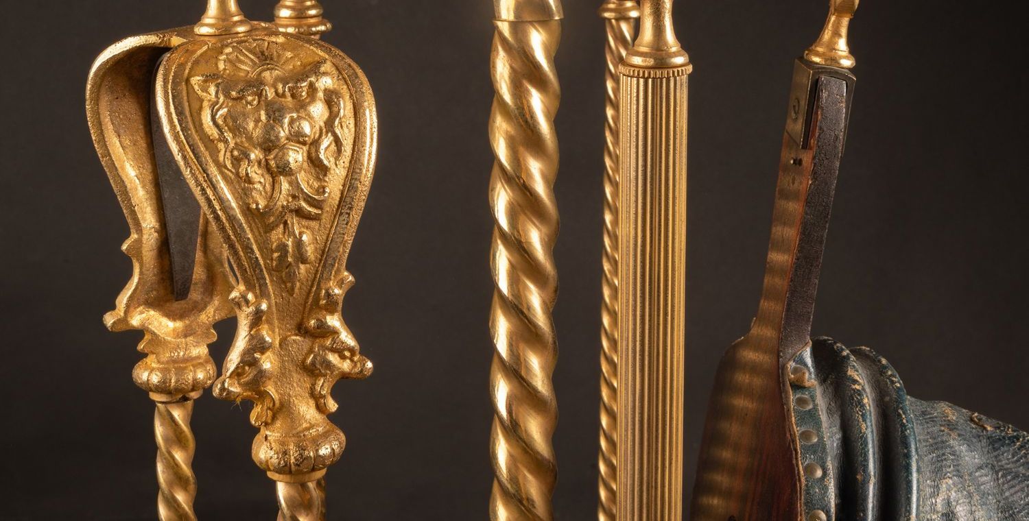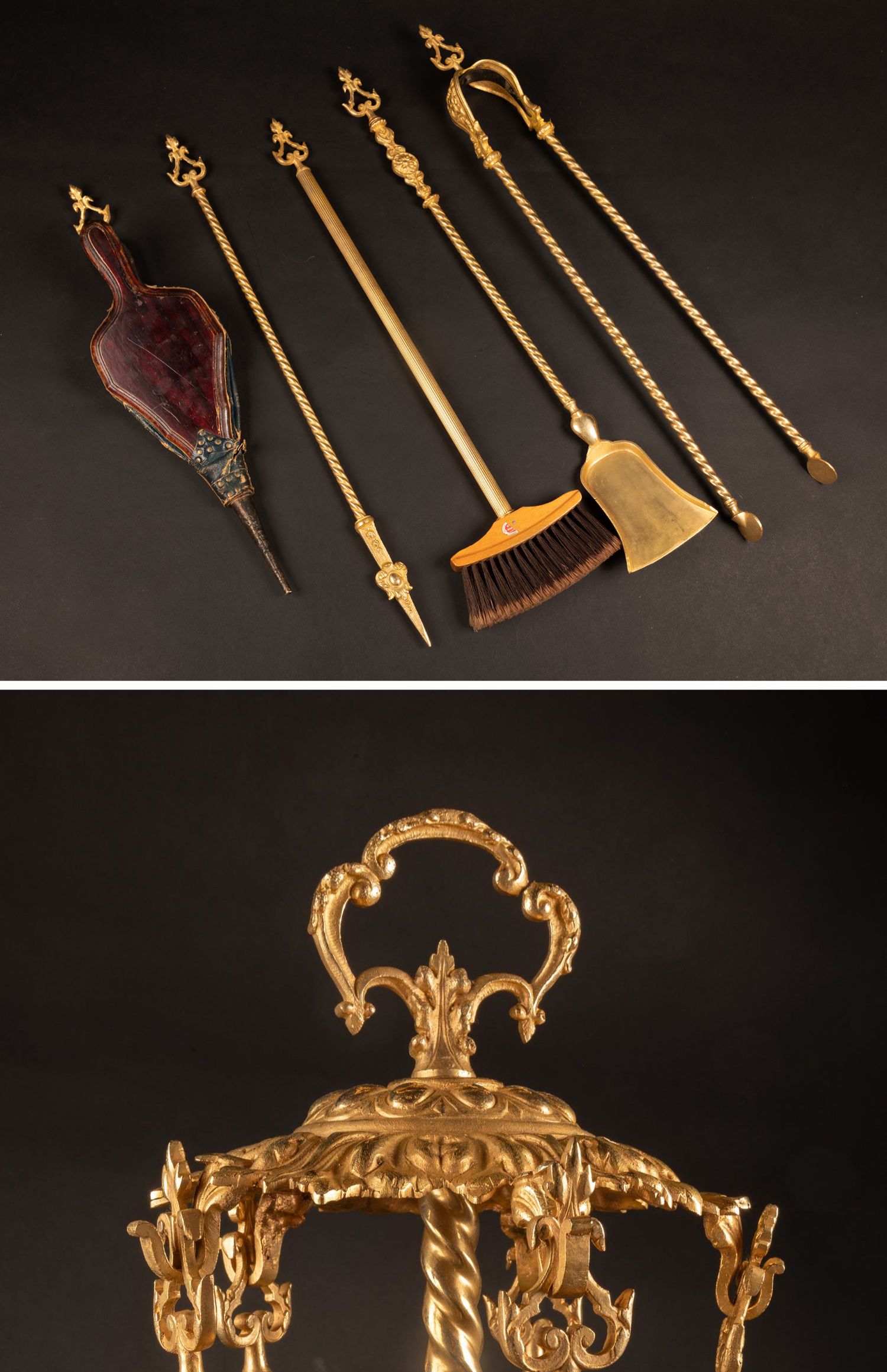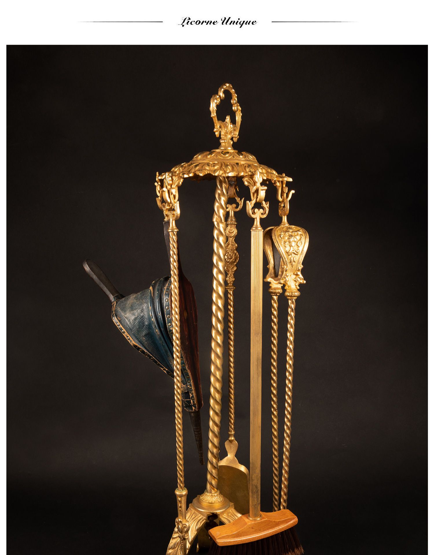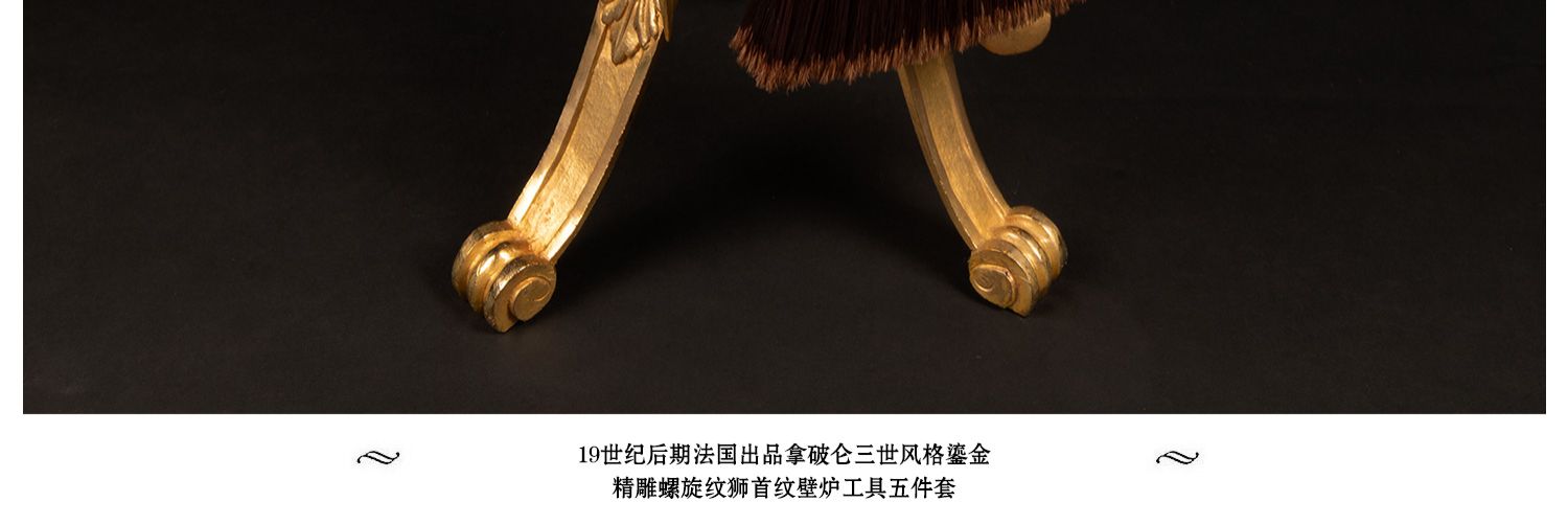 独角鹿西洋古董法国鎏金精雕螺旋纹狮首纹壁炉工具五件套