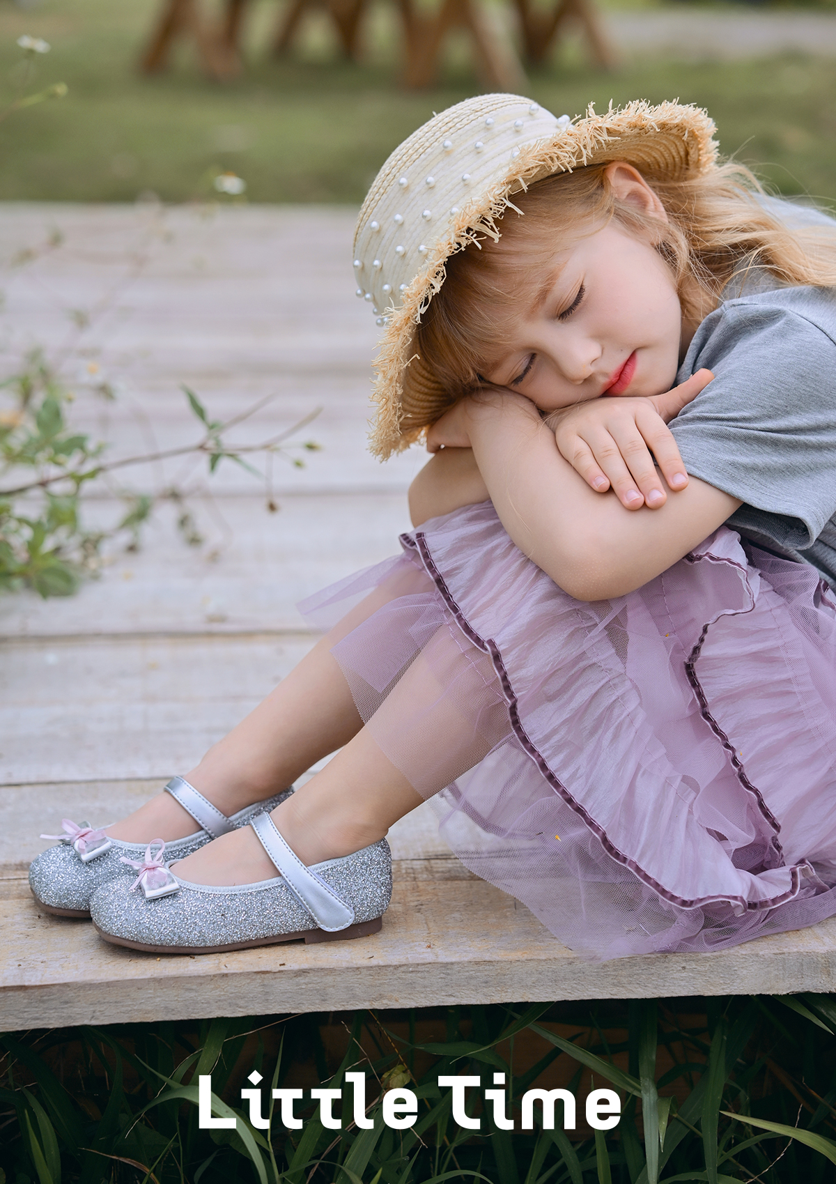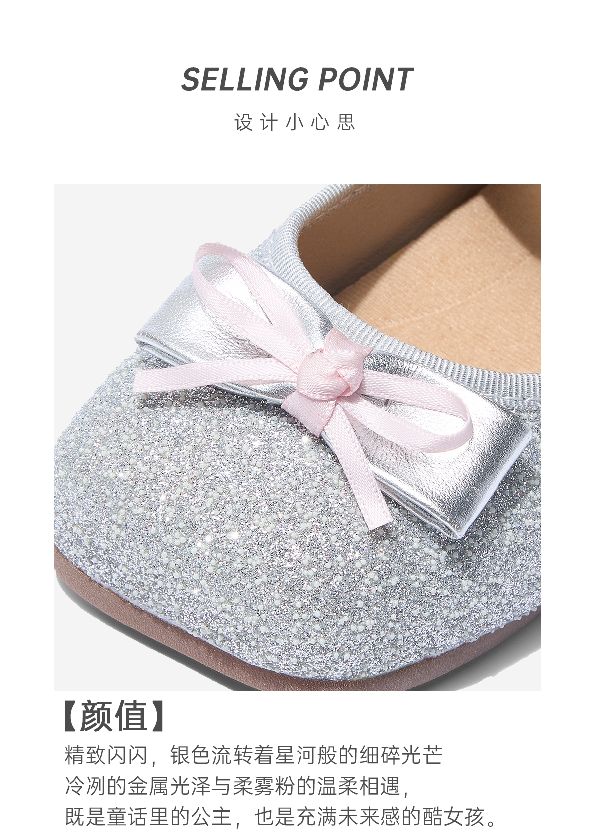 littletime女童皮鞋2025春新款儿童洋气时尚蝴蝶结亮钻闪公主鞋