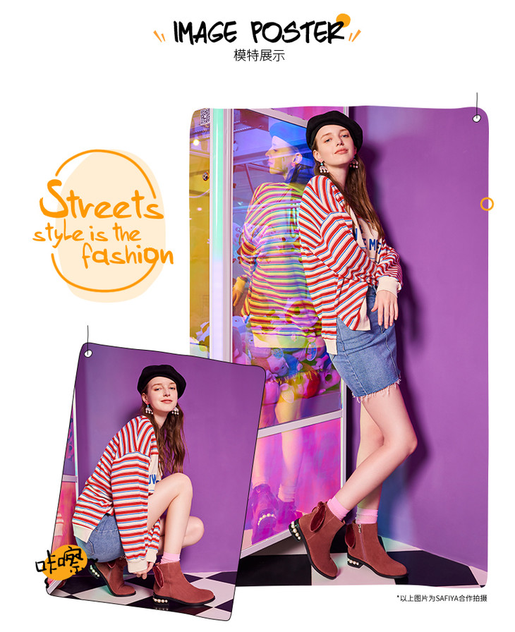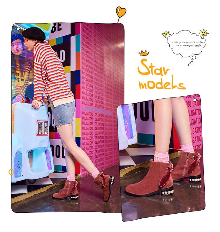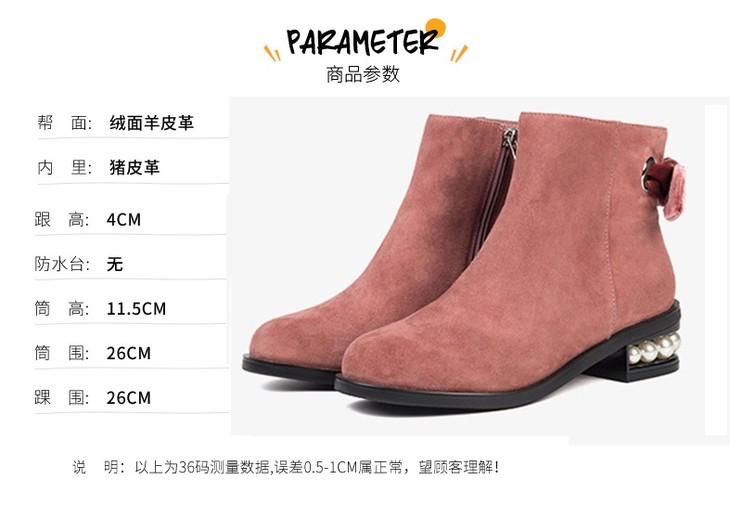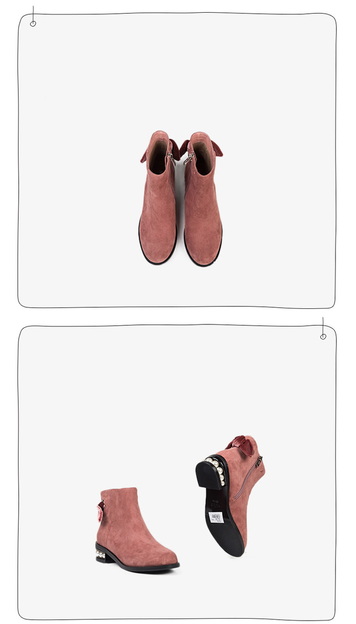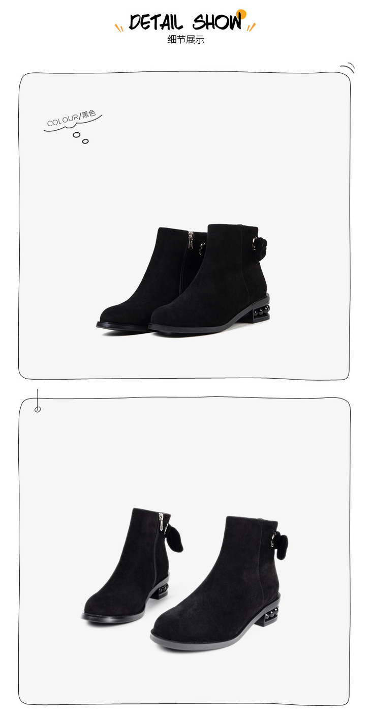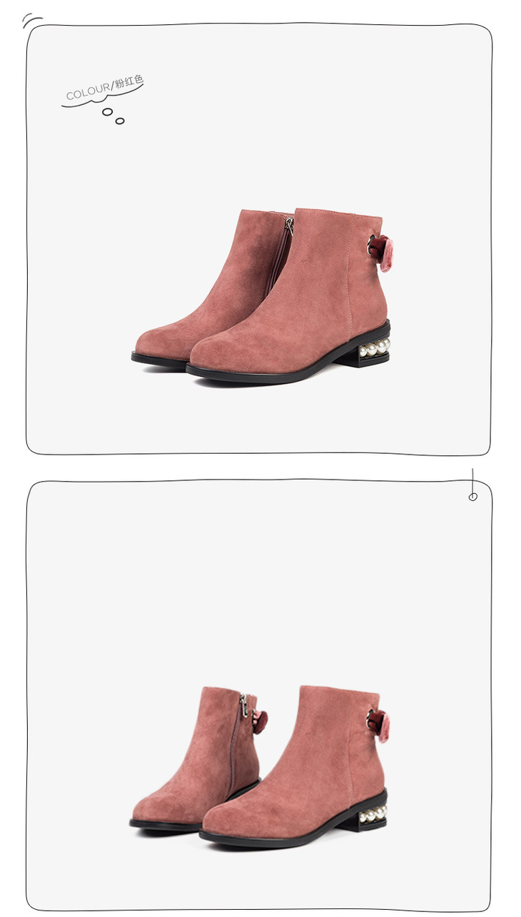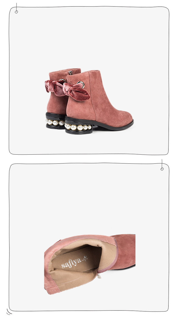 Safiya索菲娅冬季低跟珍珠舒适侧拉链短靴女靴子SF84116082