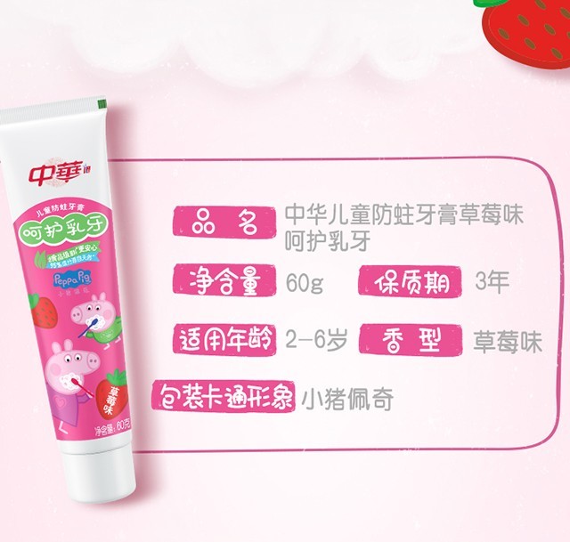 【亚欧超市】中华呵护乳牙儿童防蛀草莓牙膏60g