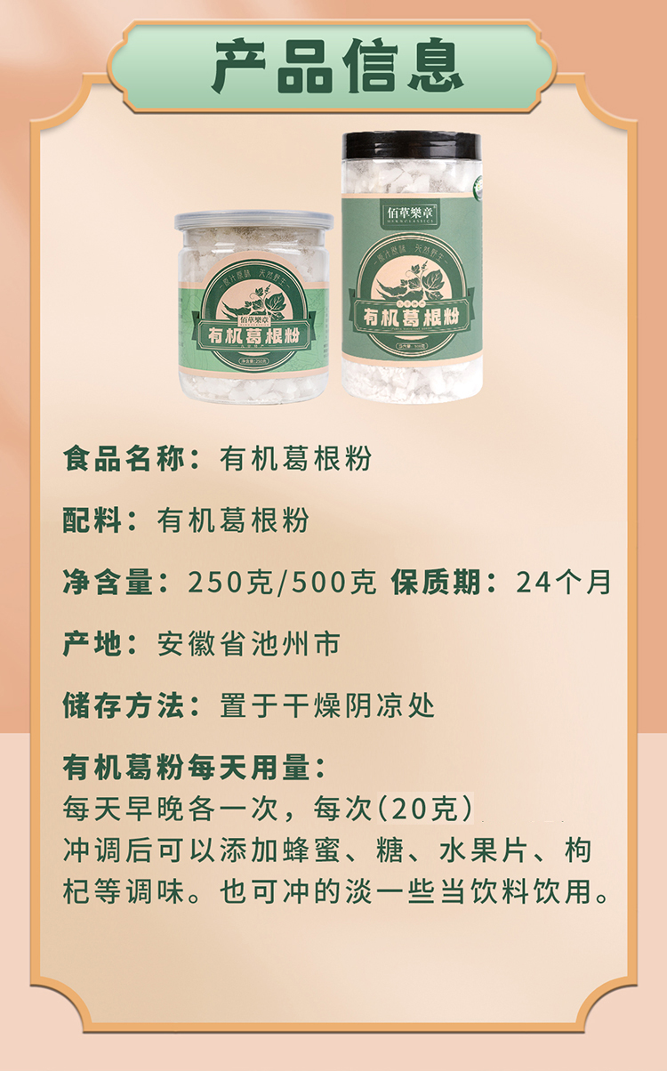 佰草乐章有机葛根粉天然野生葛粉九华山特产中药材代餐粉食品500g