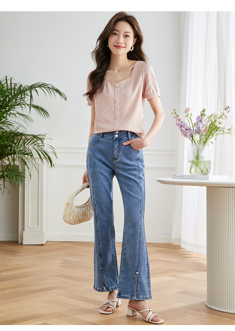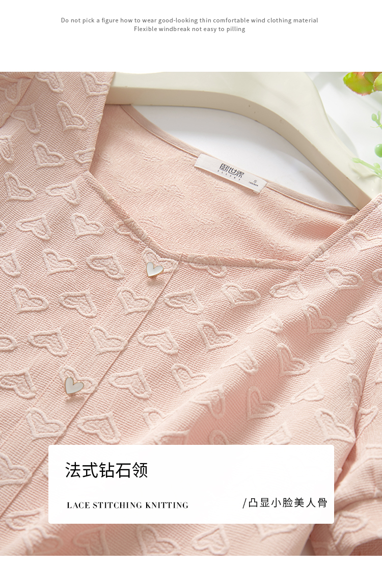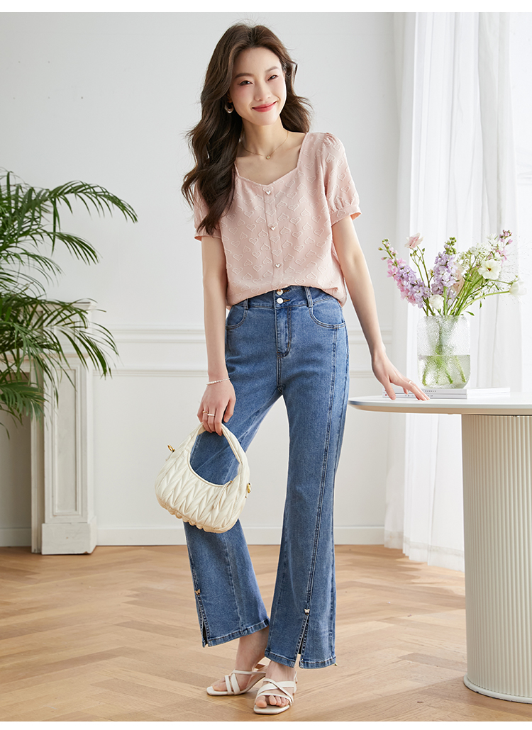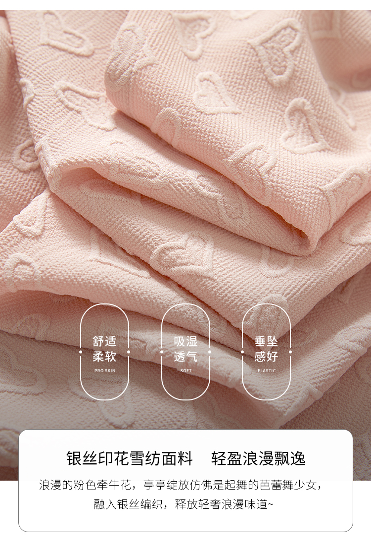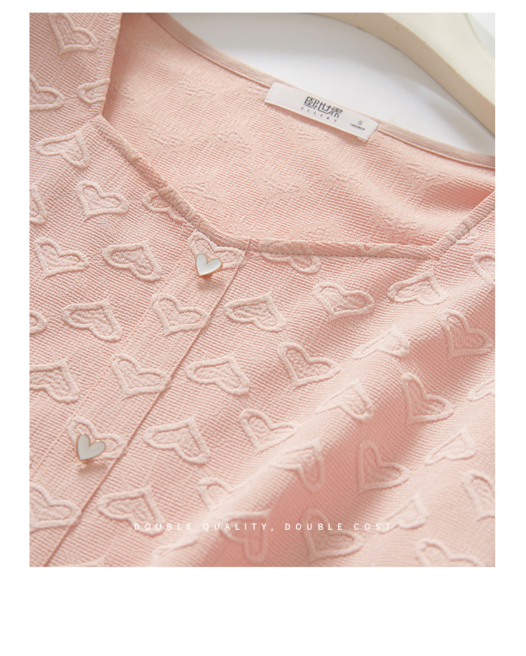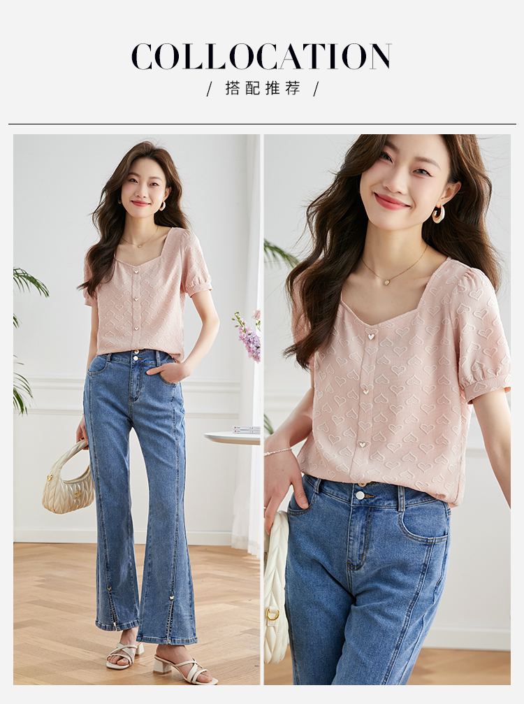 【专属特价】熙世界重磅银丝爱心印花雪纺衬衫女夏季甜美风泡泡袖法式方领上衣