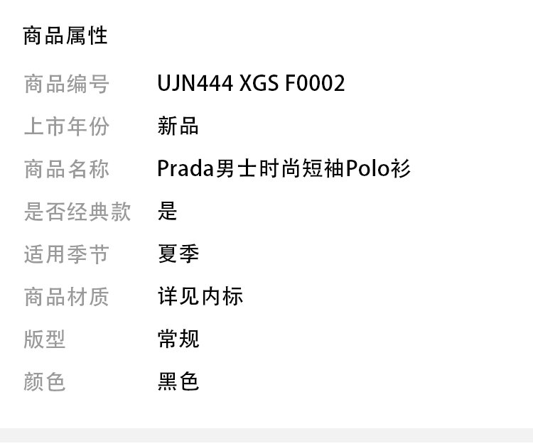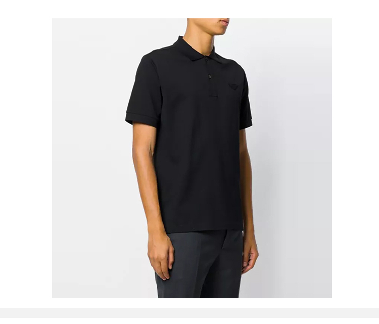 PRADA 普拉达 男士棉质珠地布三角形徽标短袖 POLO 衫 黑色 UJN444 XGS F0002