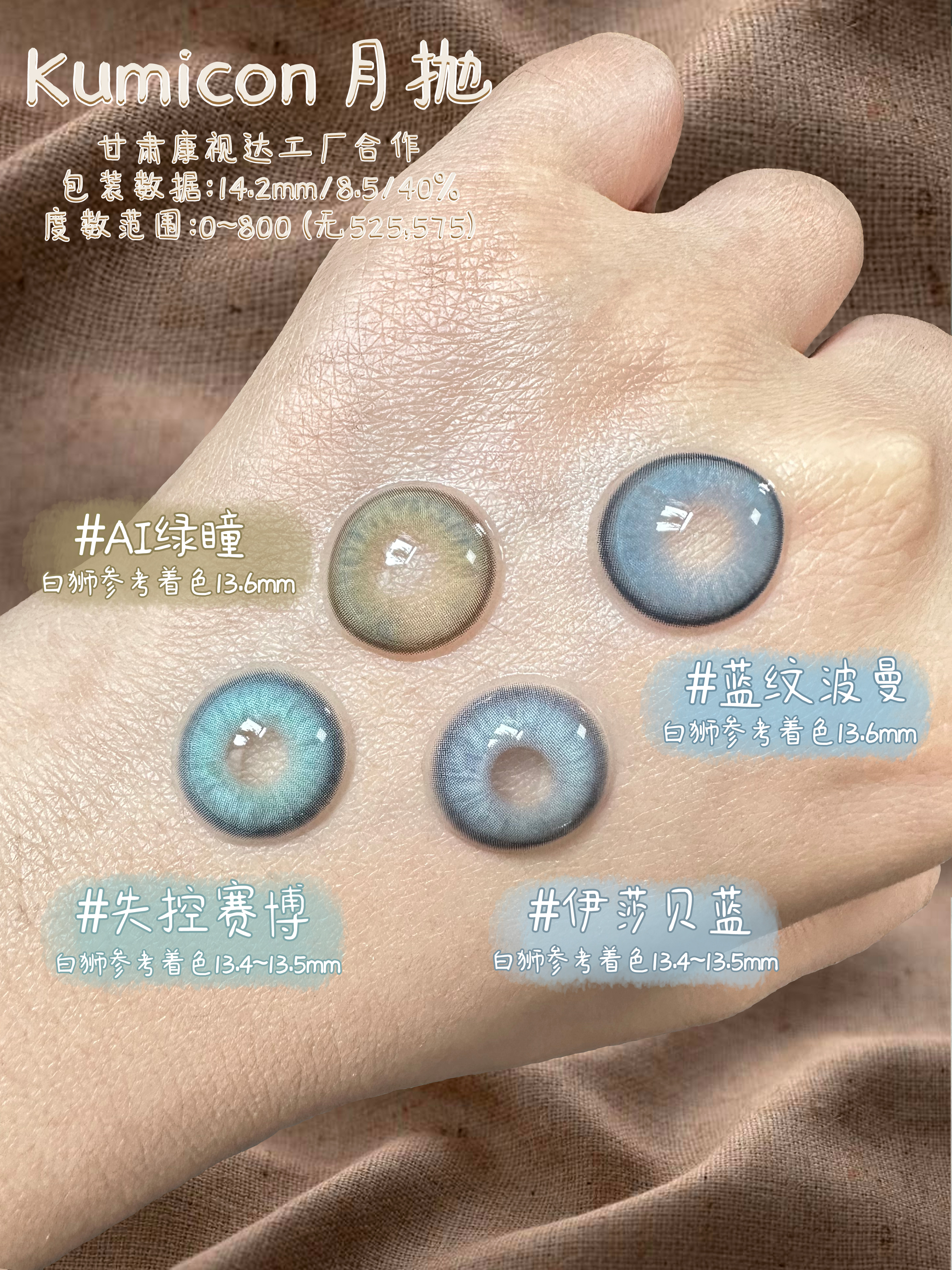 Kumicon旗下|AI绿瞳&蓝纹波曼&失控赛博&伊莎贝蓝|14.2mm实际着色中大直径 月抛 2片