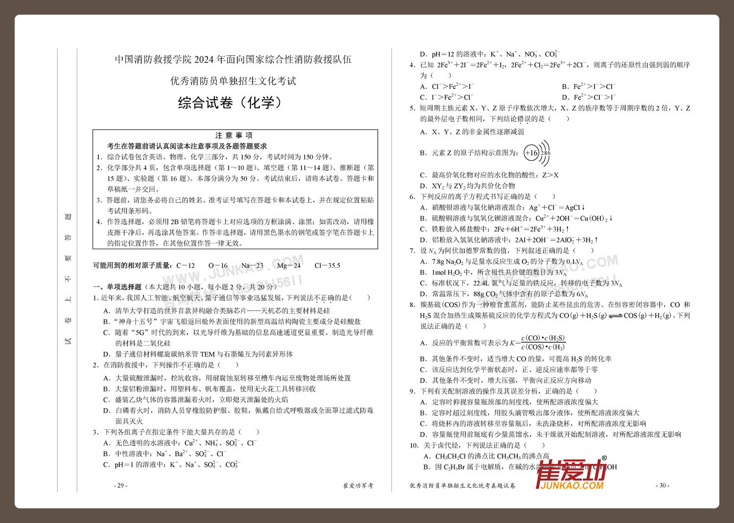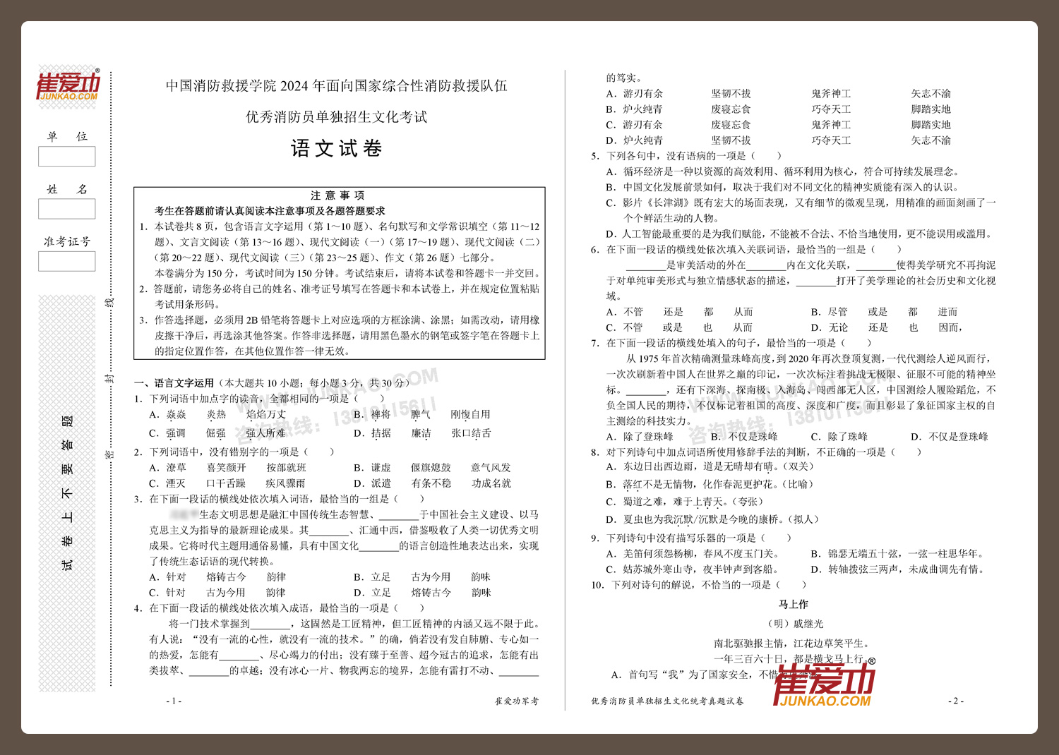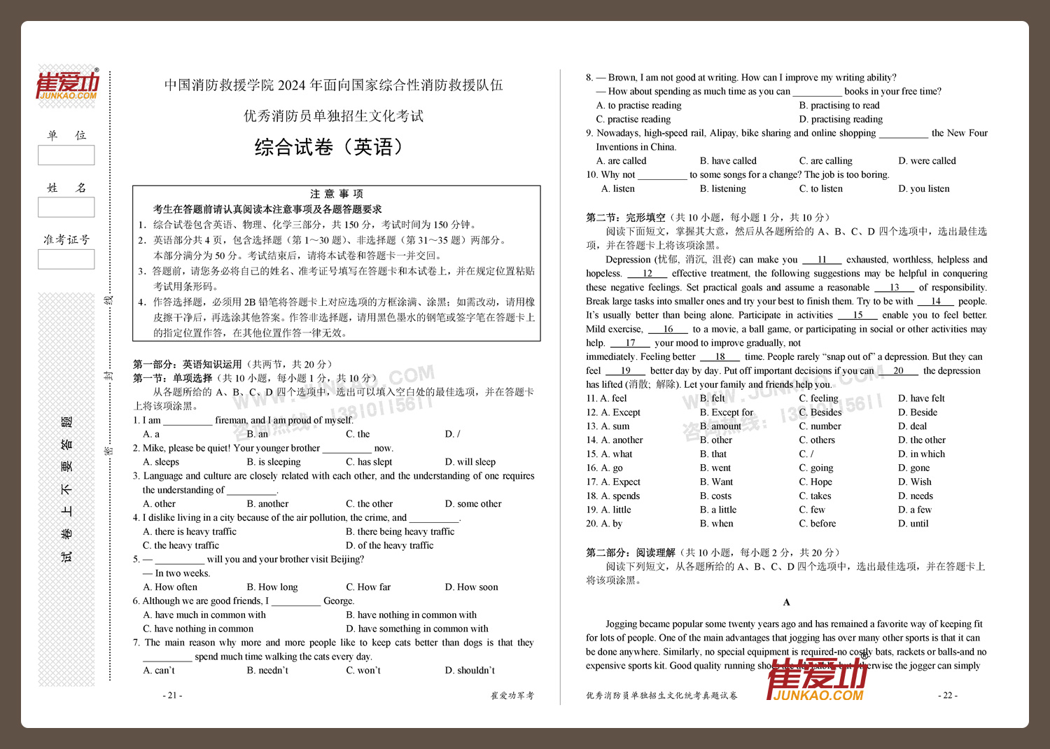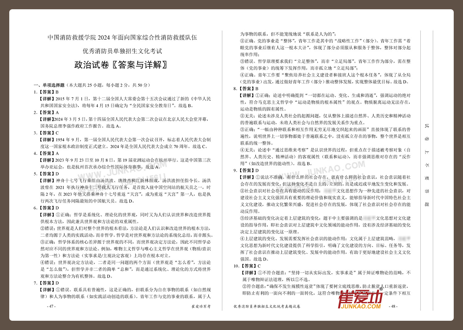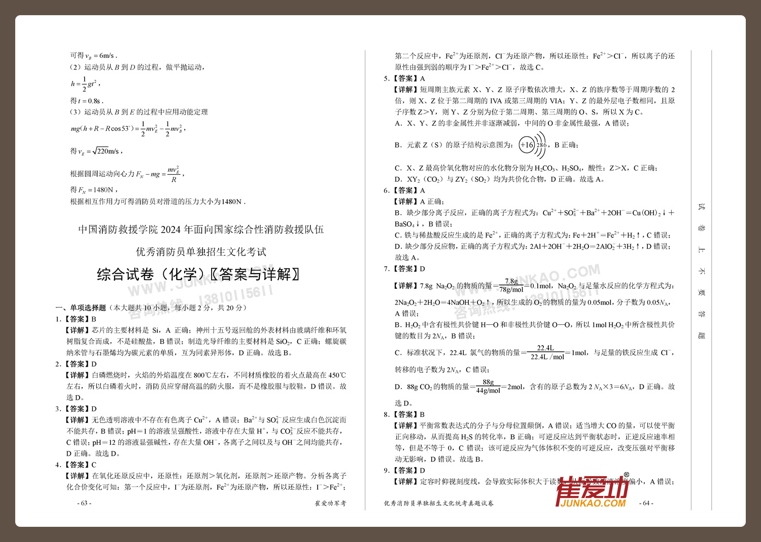 【消防员】《历年真题试卷(2015-2024)》消防救援学院_高中学历