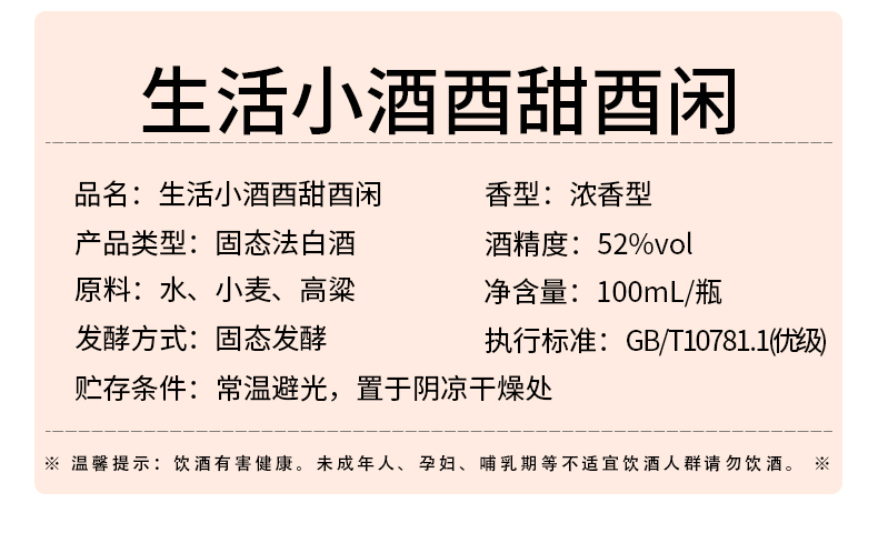 [酉甜酉闲]52度2小瓶-青小乐小瓶酒 52度100ml*2瓶