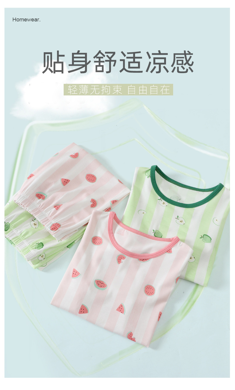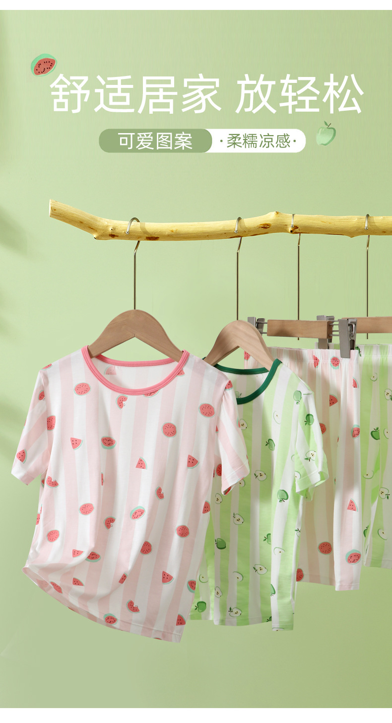 儿童短袖家居服套装夏天薄款优可丝男童女童睡衣套装类似莫代尔【110cm-130cm】