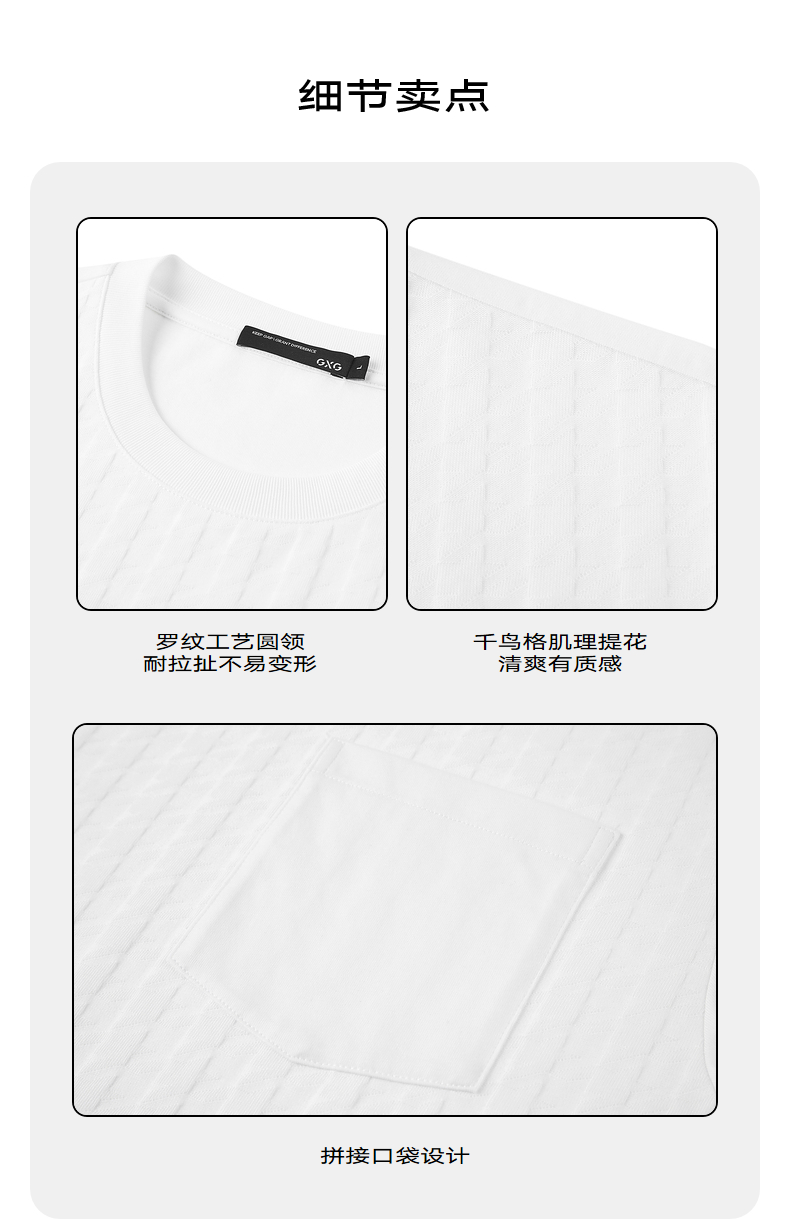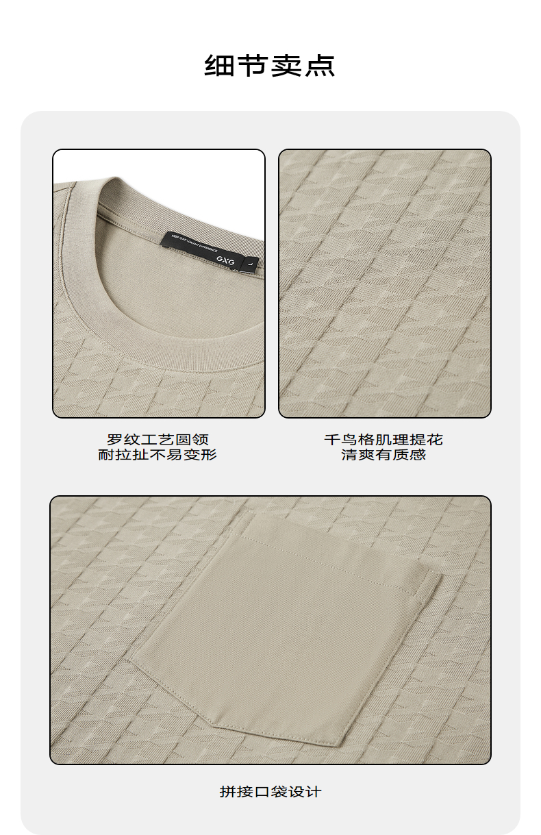 GXG男装 夏季双色时尚千鸟格提花休闲圆领短袖t恤男