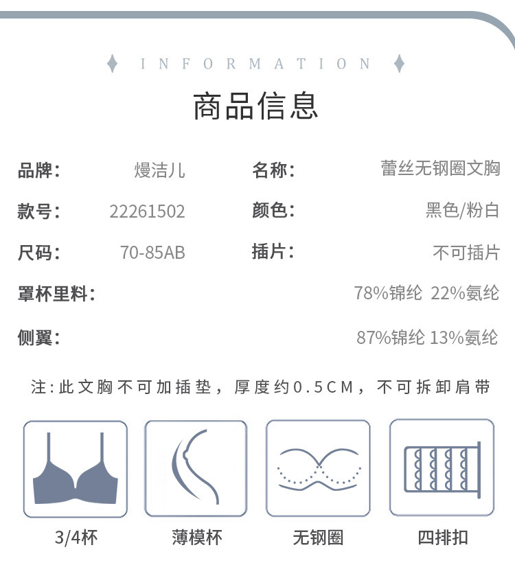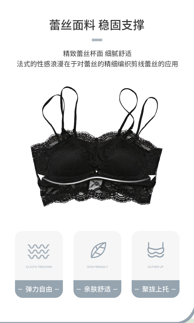熳洁儿 性感美背抹胸小胸显大性感蕾丝防走光无痕内衣女聚拢文胸罩22261502