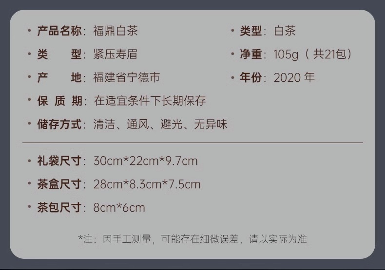 华祥苑寿眉 福鼎白茶寿眉紧压小方片口粮便携装105g