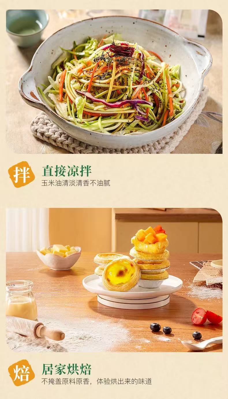 长寿花压榨玉米油700ml*1桶非转基因物理压榨一级食用油烘焙油植物油