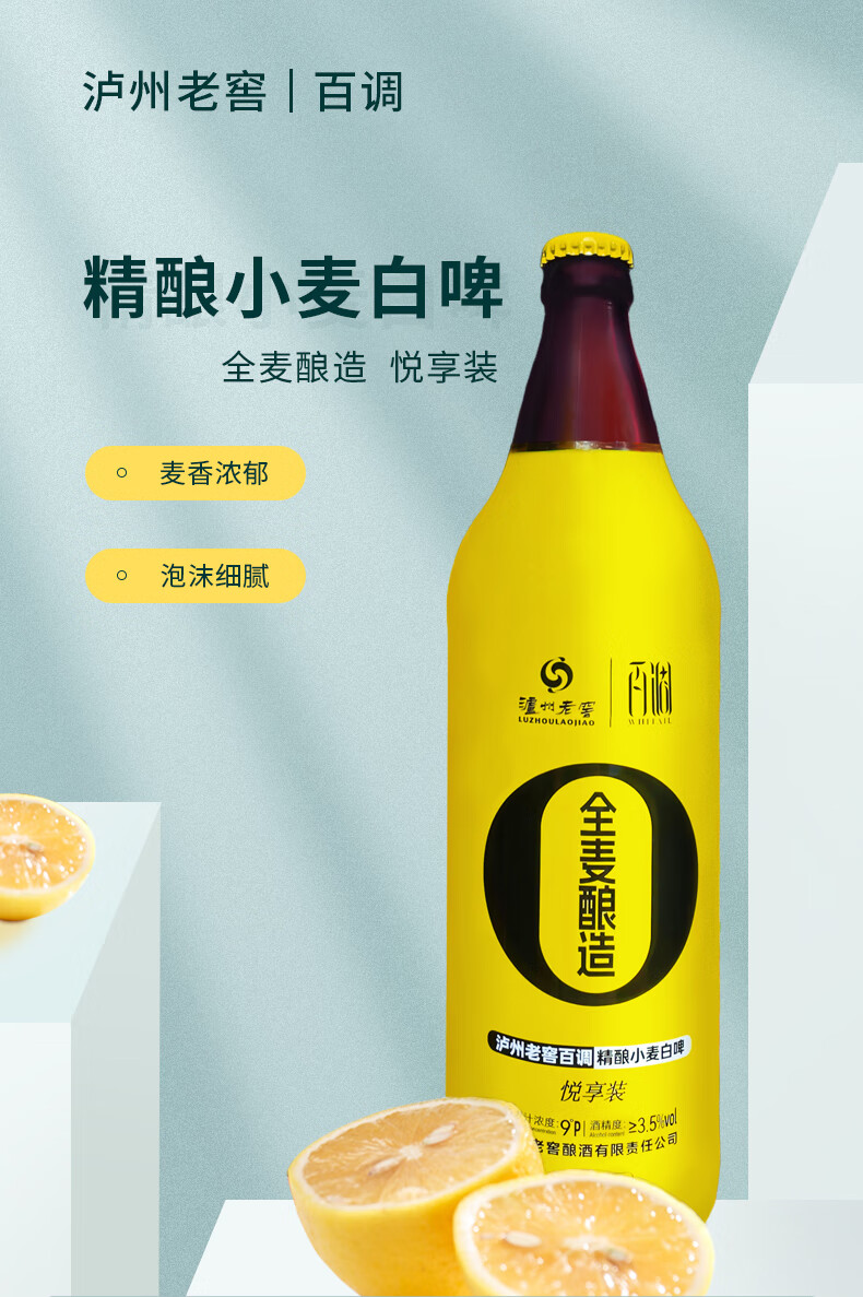 泸州老窖百调精酿啤酒 全麦酿造 980mL*4瓶