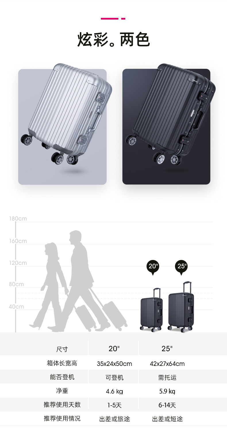 外交官TL-7352/3铝镁合金万向轮行李箱旅行箱