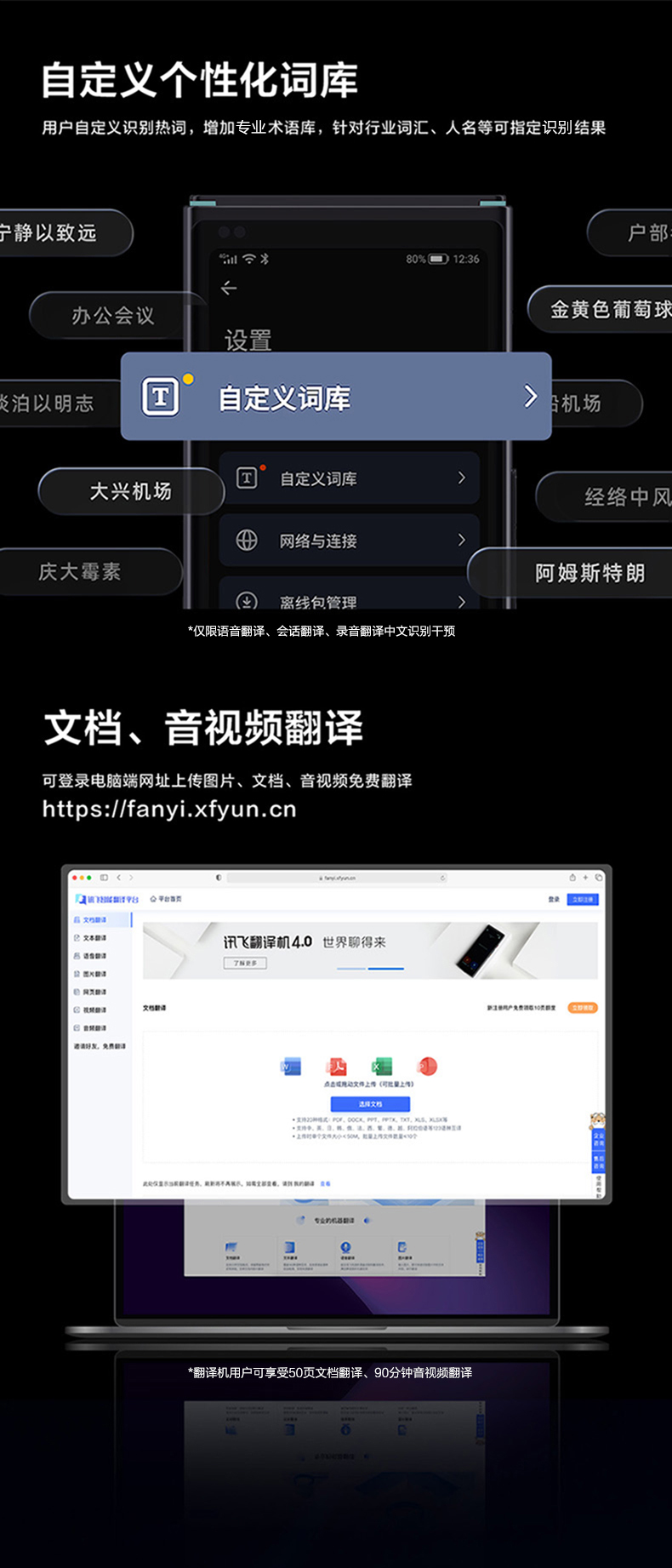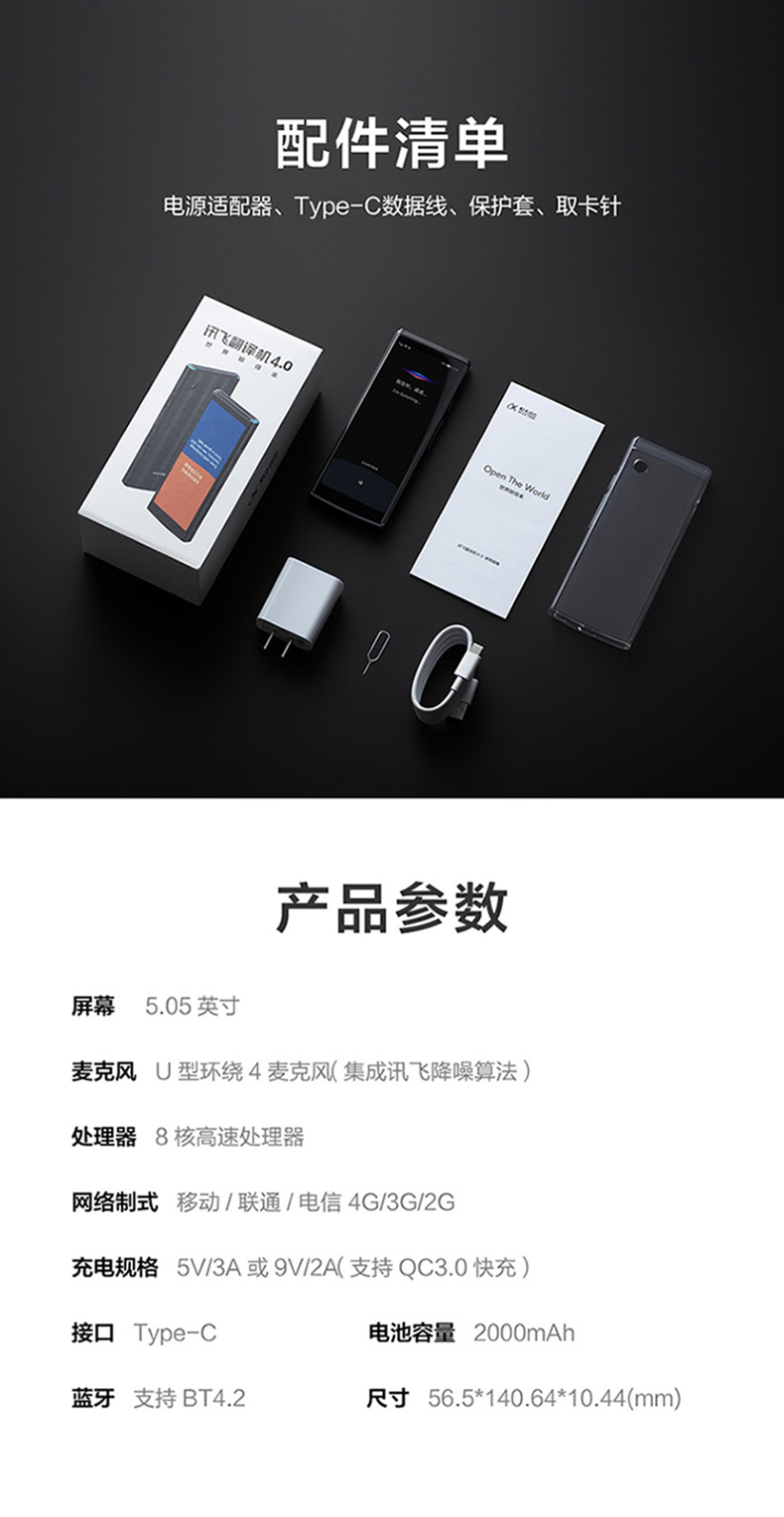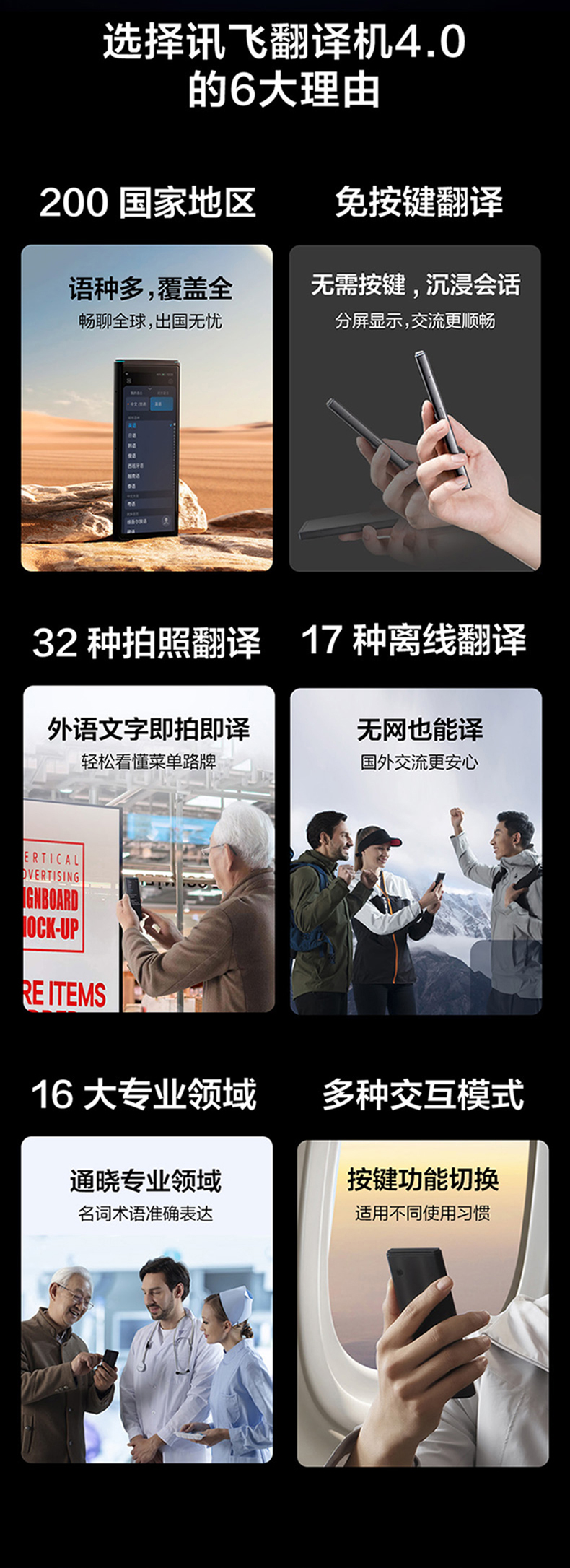 科大讯飞 翻译机4.0 多语种在线翻译 语音拍照出国实时翻译 48小时发货