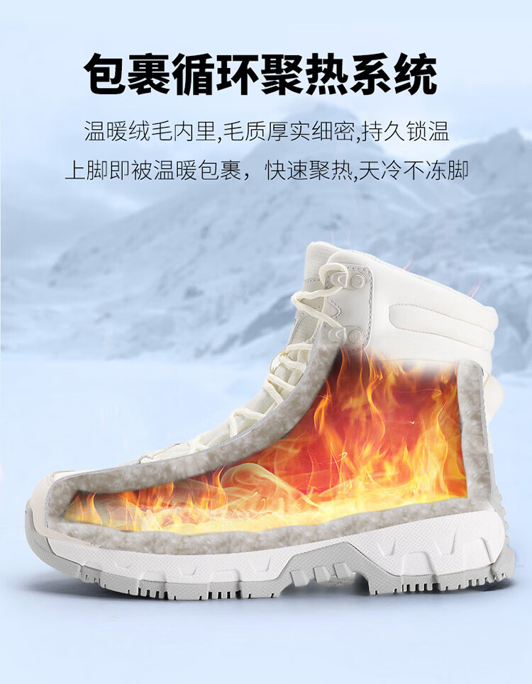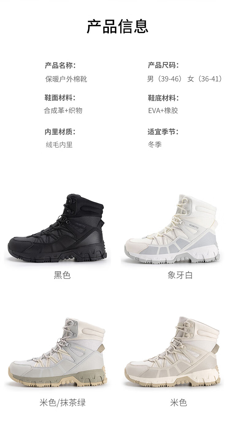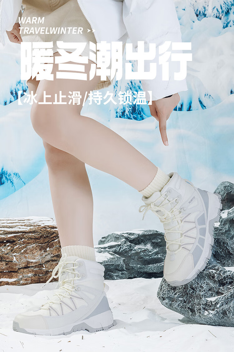 【新品268秒杀!】悍途(Humtto)秋冬新款厚底户外加绒登山鞋 雪地靴厚绒内里抗寒保暖男女款百搭户外棉鞋 550175