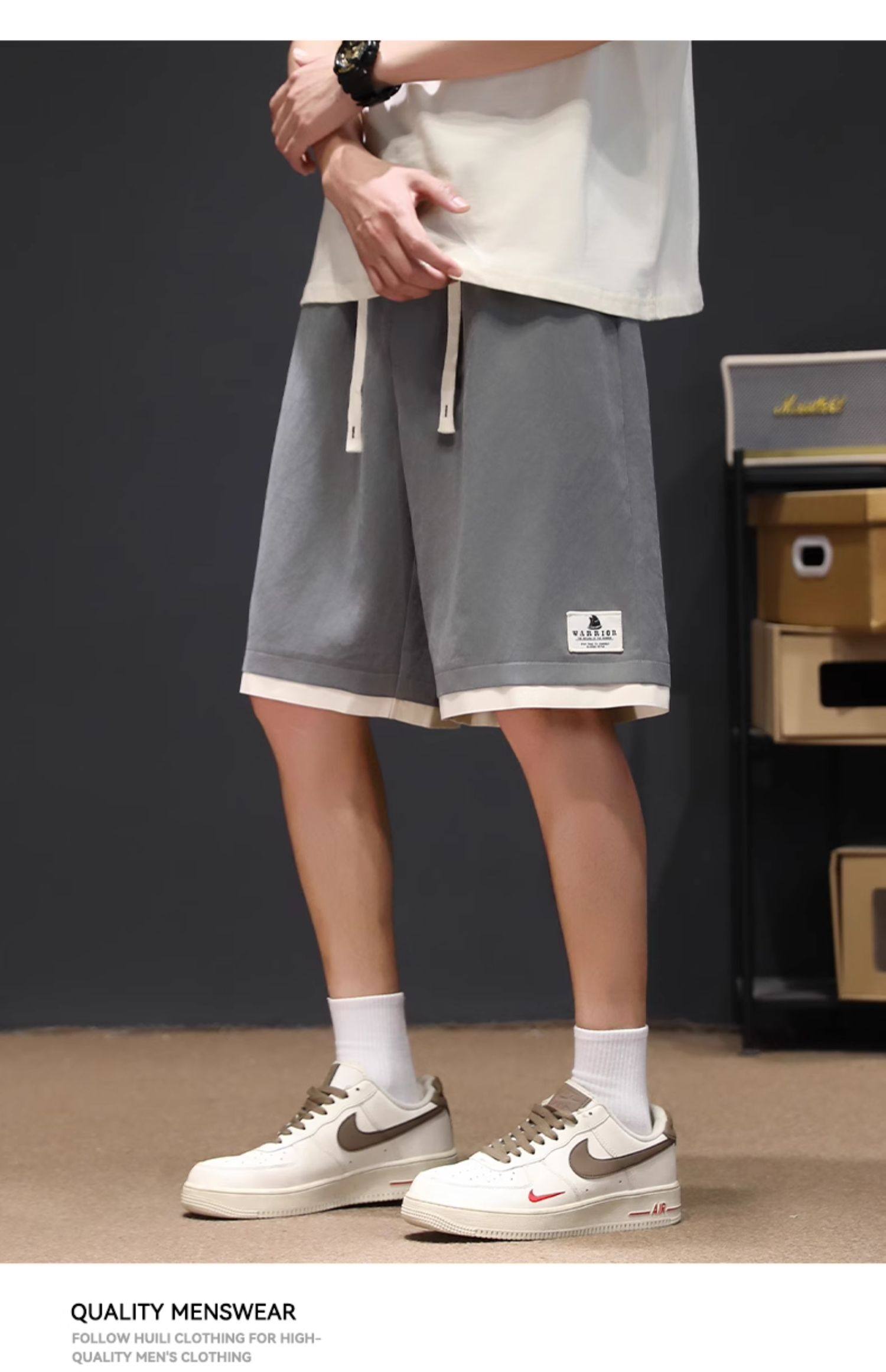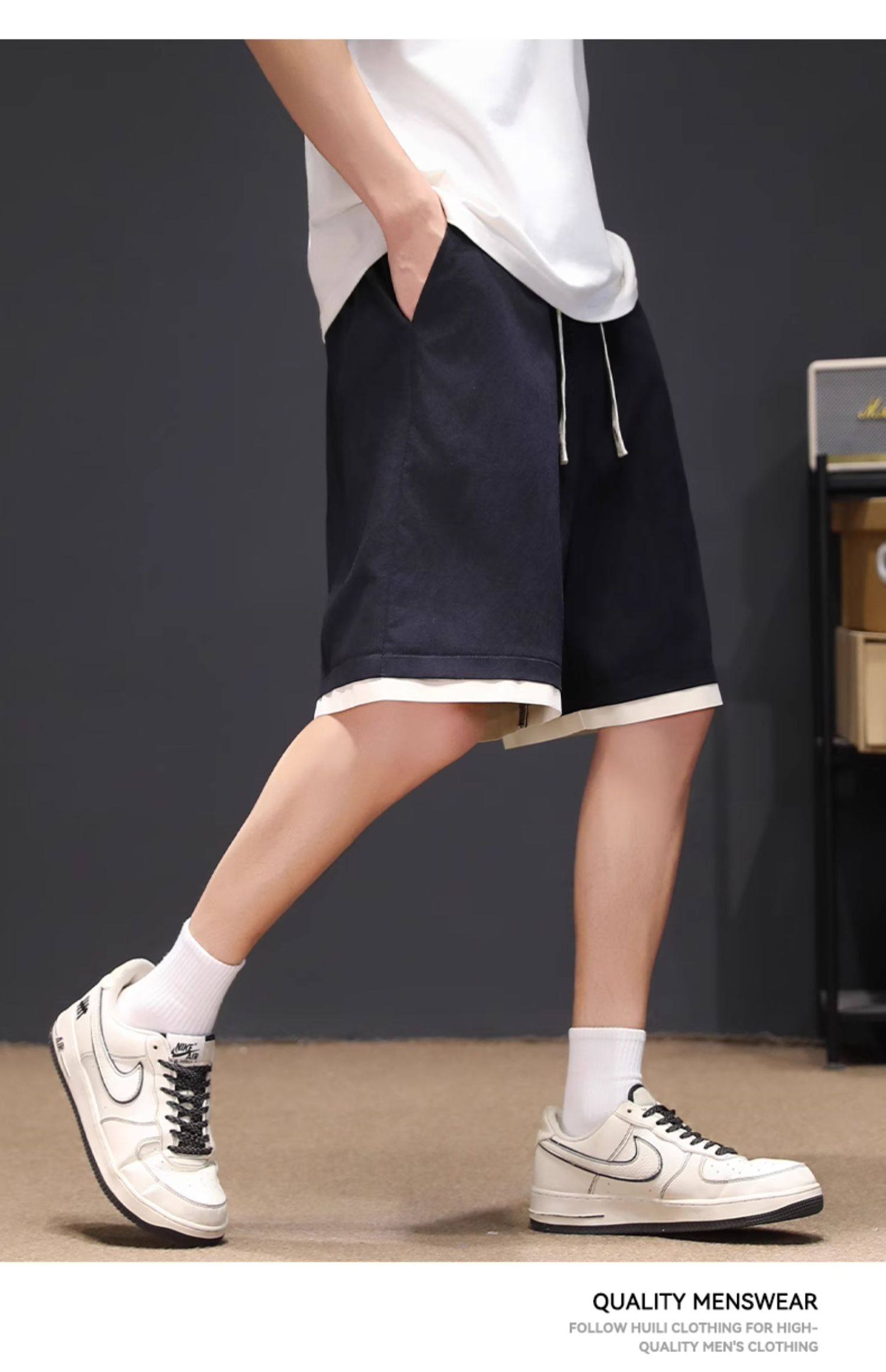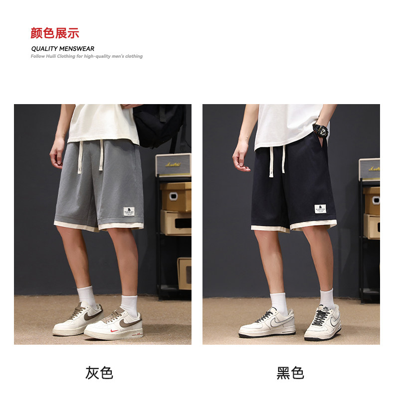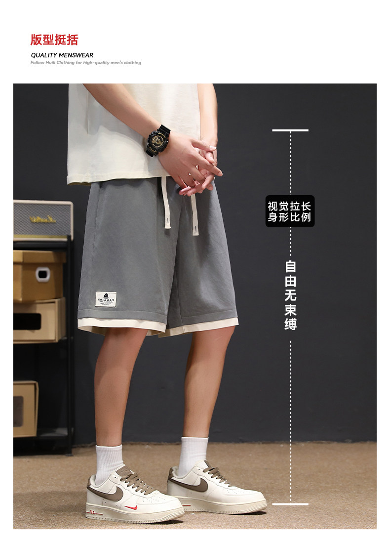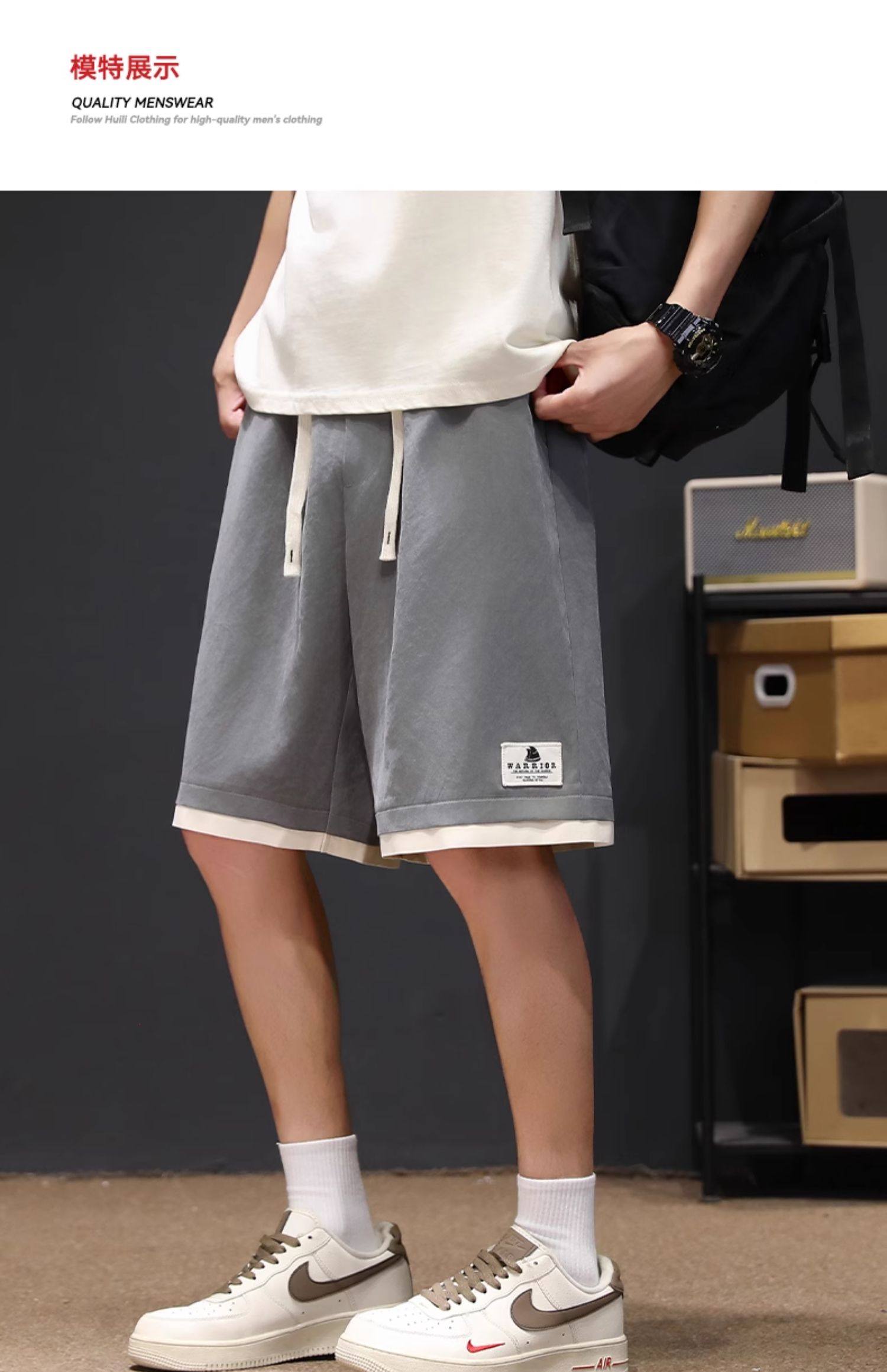 回力短裤男2025夏季新款假两件裤子美式潮牌休闲宽松黑色五分裤薄