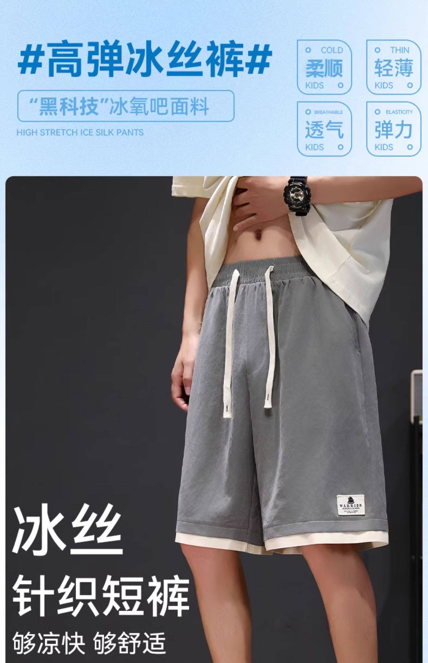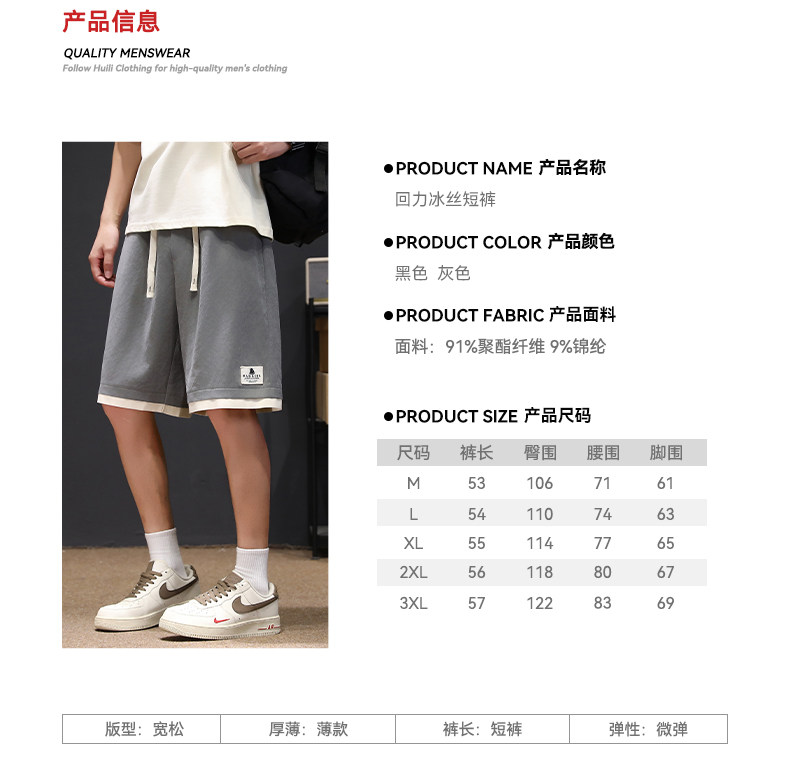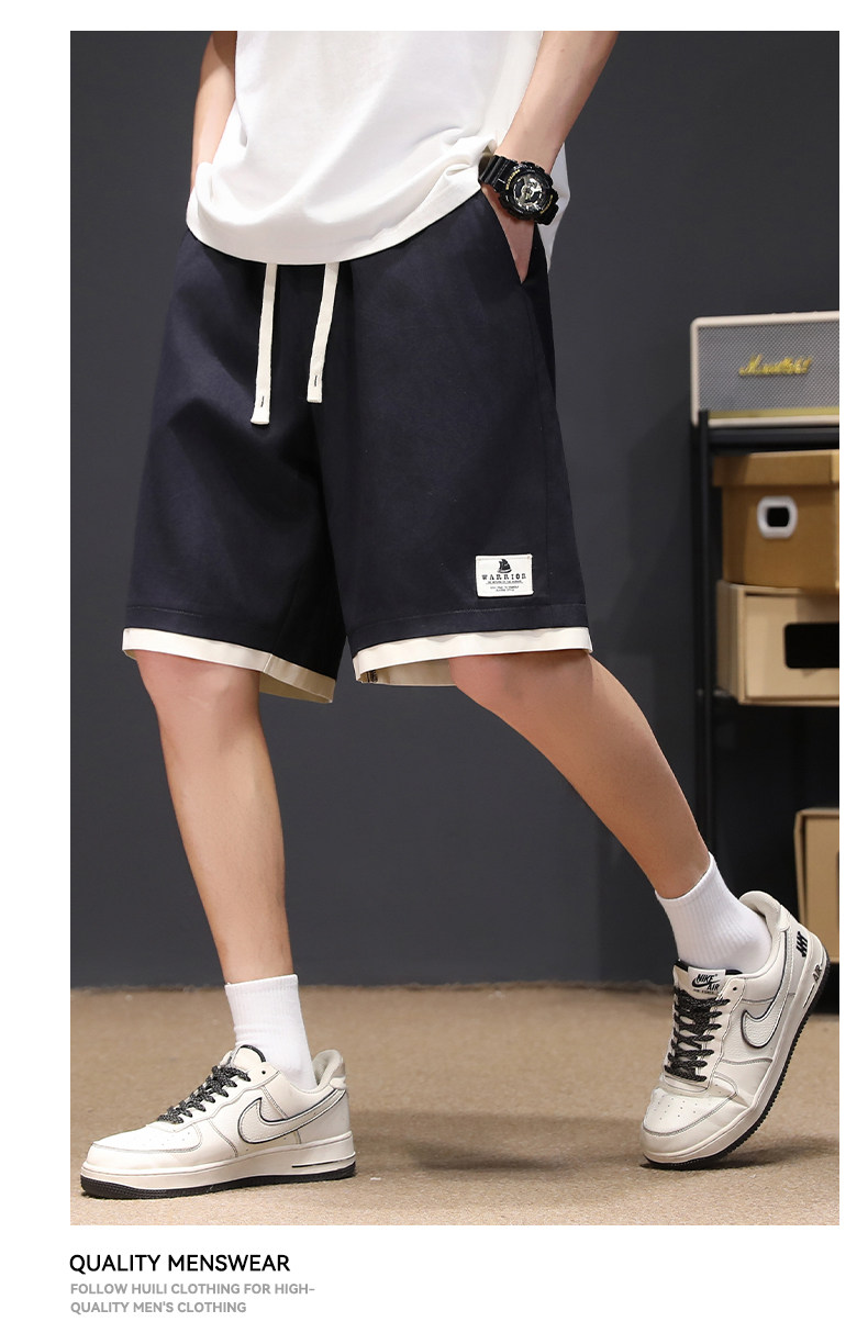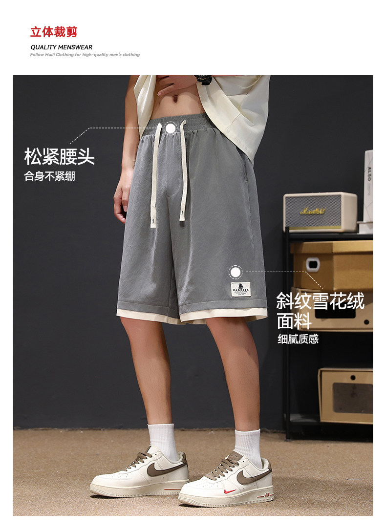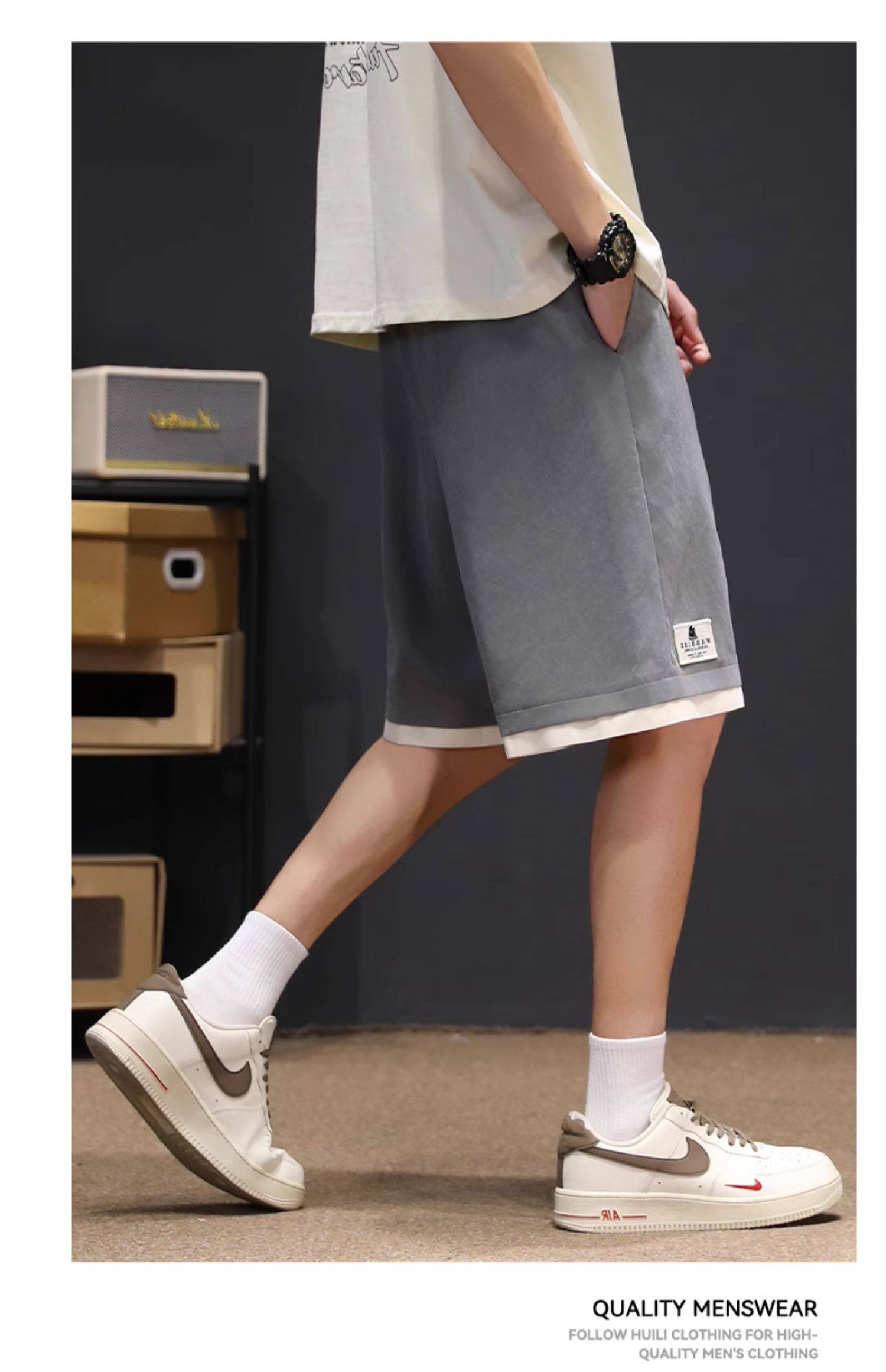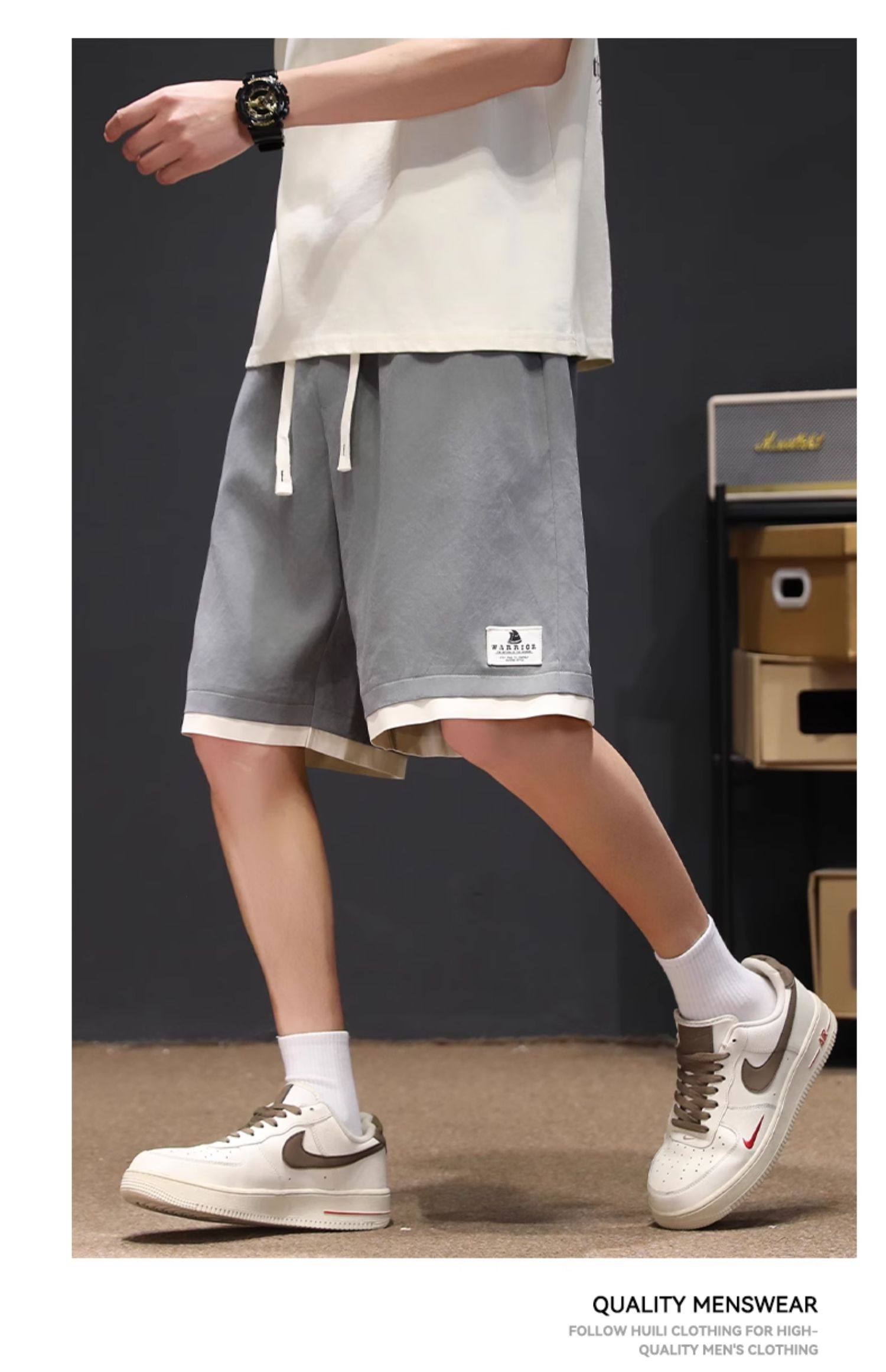 回力短裤男2025夏季新款假两件裤子美式潮牌休闲宽松黑色五分裤薄