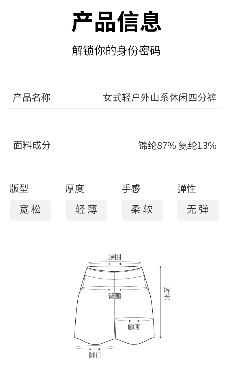 I’d爱帝女式轻户外山系休闲四分裤运动中裤登山裤夏季工装短裤