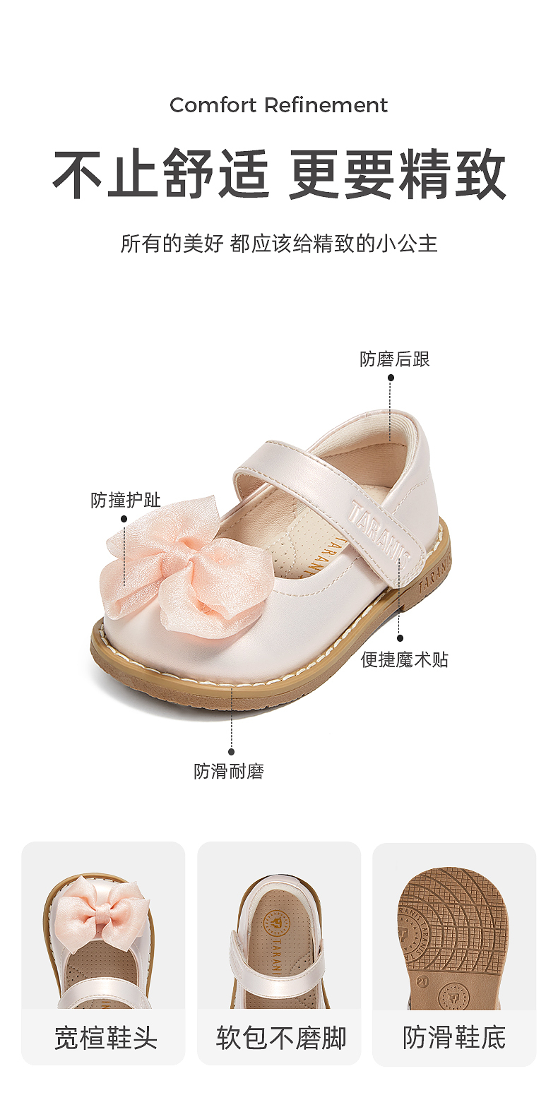 泰兰尼斯女童公主鞋法式绝美小皮鞋春季新款女宝宝包头软底学步鞋 T03T5A5764