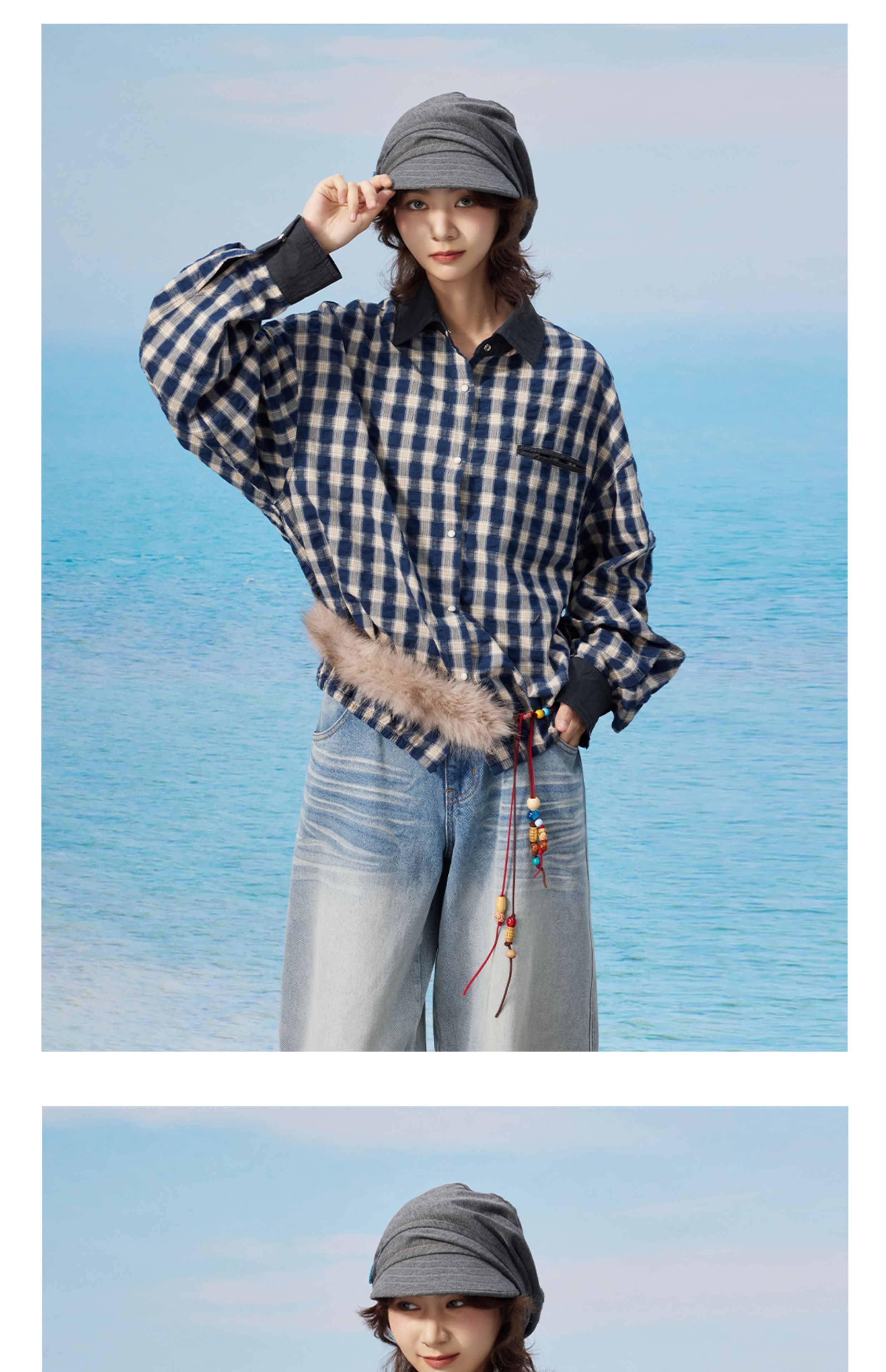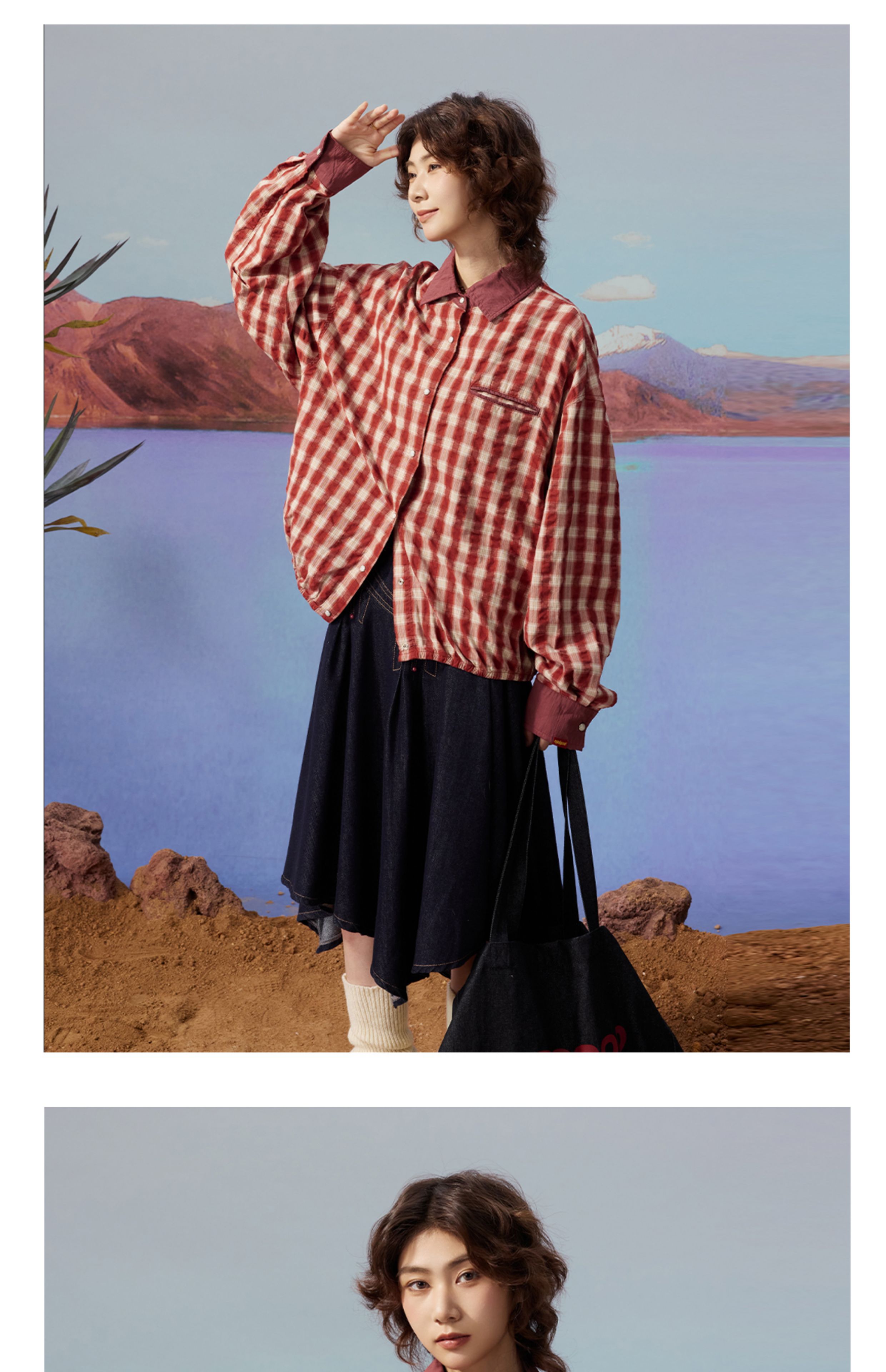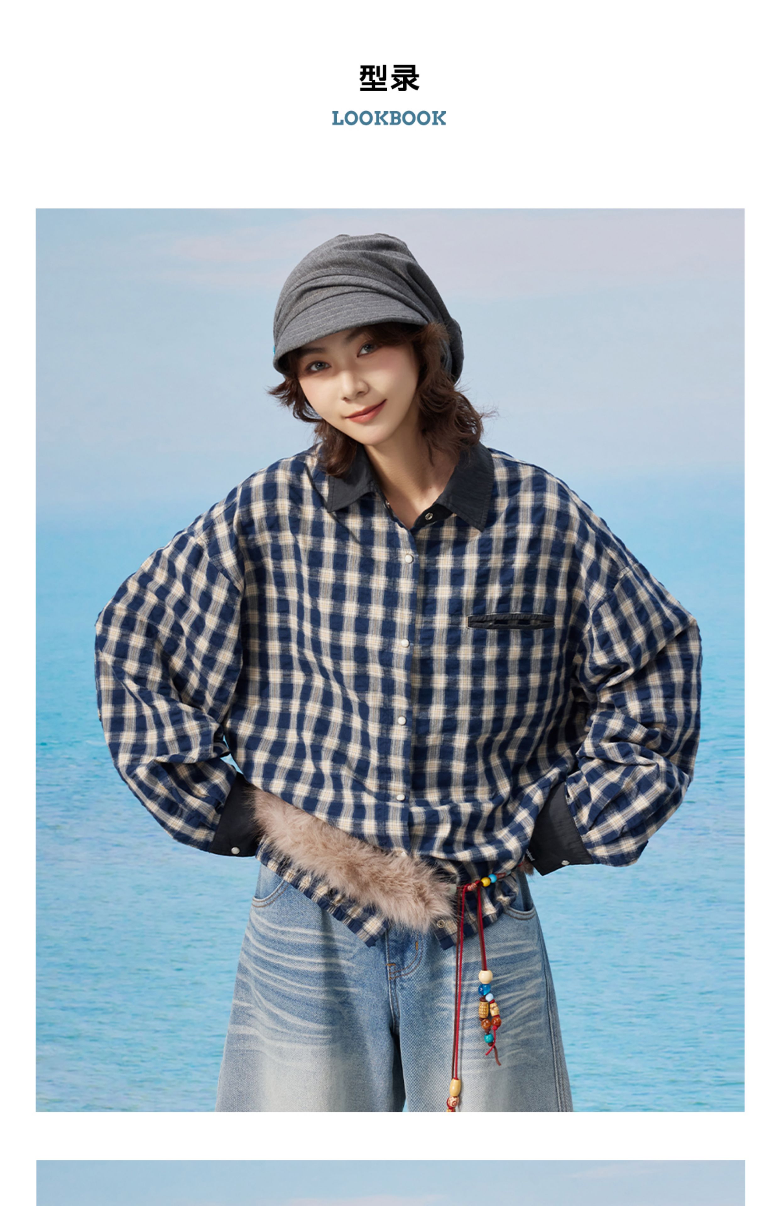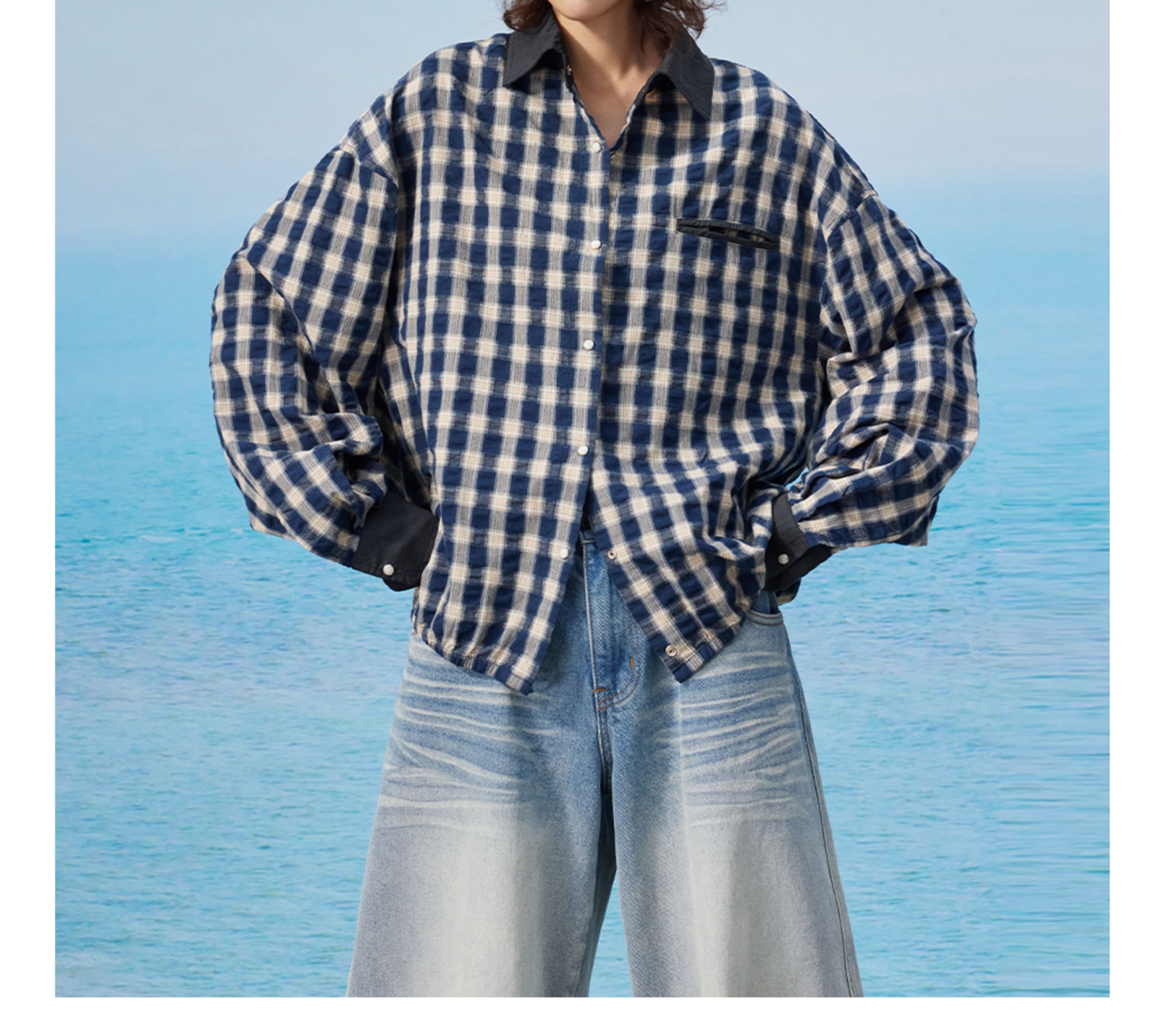 马得工地/MDGDCS13204/肌理格纹撞色领短款衬衫
